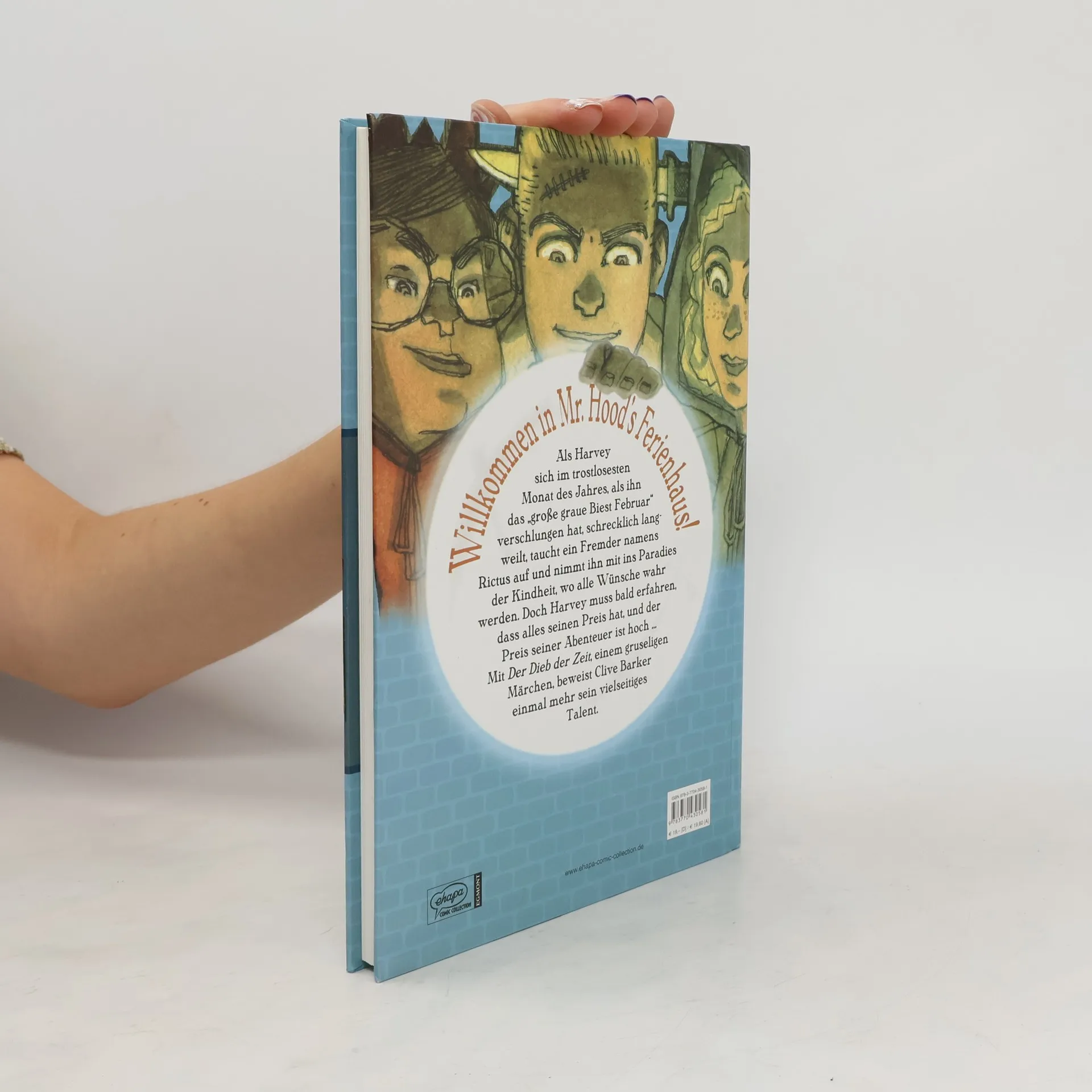 Ein Grusel-Märchen für Jugendliche und Erwachsene Als der kleine Harvey sich im trostlosesten Monat des Jahres (als ihn die „große graue Bestie Februar“ verschlungen hat) schrecklich langweilt, taucht unvermittelt ein Fremder namens Rictus auf und nimmt ihn mit ins Paradies der Kindheit, wo alle Wünsche wahr werden. Eigentlich eine fantastische Sache. Doch Harvey muss bald erfahren, dass alles seinen Preis hat - und der Preis seiner Abenteuer, die er erlebt, ist hoch. Mit „Der Dieb der Zeit“ (auch unter dem Titel „Das Haus der verschwundenen Jahre“ als Taschenbuch erschienen) beweist Clive Barker, der mit seinen Büchern des Blutes und dem Film „Hellraiser“ das Horror- und Fantasy-Genre revolutionierte, einmal mehr sein vielseitiges Talent. „Die Zeichnungen wirken real, sind nicht überzeichnet und geben dieser fantastischen Geschichte auf gelungene Art und Weise ein Gesicht. Aus meiner Sicht sind das die bis zu diesem Zeitpunkt besten Comics, die bisher unter Clive Barkers Namen veröffentlicht wurden.“ (Offizieller deutscher Clive Barker Fanclub "That's Clive„) “Was man aber mit Gewissheit sagen kann, ist dass Clive Barker's The Thief of Always ein Comic ist, der von Kris Oprisko (Metal Gear Solid, Resident Evil) und Gabriel Hernandez (CVO: Artifact) eindrucksvoll erzählt wird."