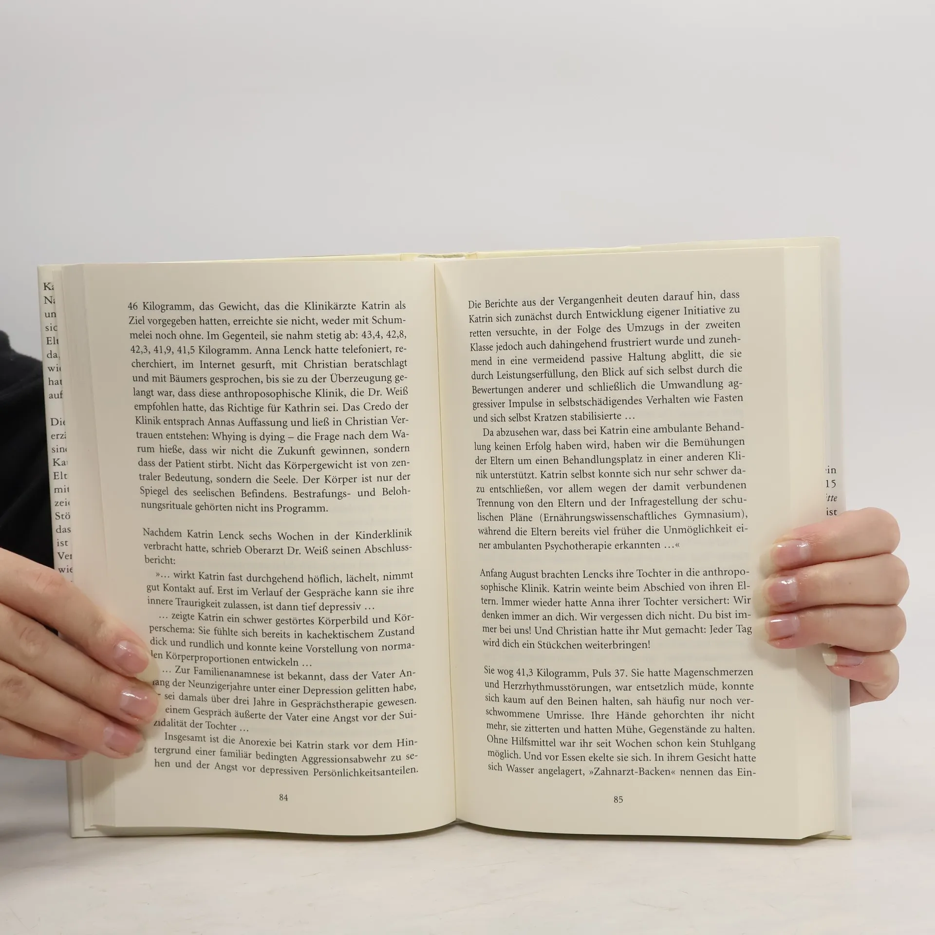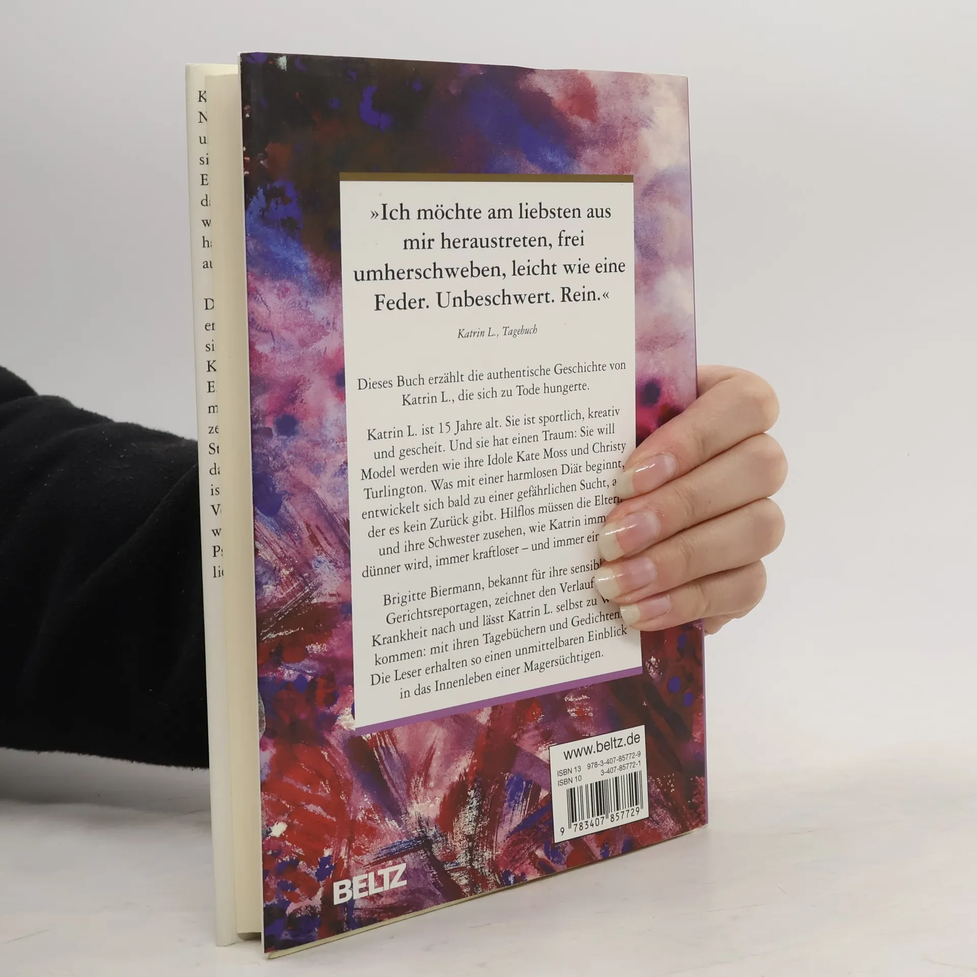 Katrin beginnt mit 15 eine harmlose Diät, die sich schnell zur Magersucht entwickelt. Sie hasst sich, kämpft gegen ihren Körper und niemand kann ihr helfen. Bald ist sie nur noch ein Schatten, der sich selbst in den Tod treibt ... Ab 13.