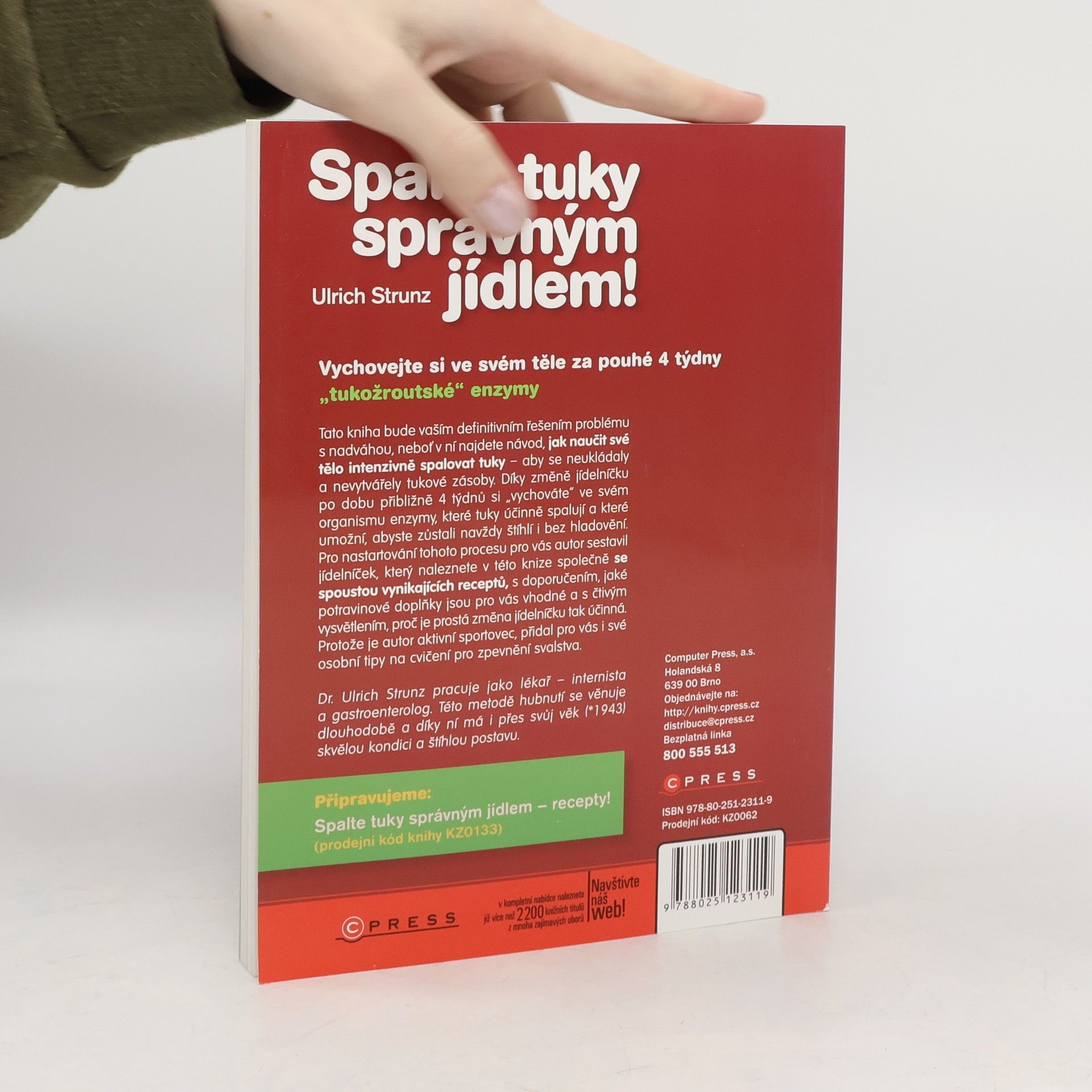 Vychovejte si ve svém těle za pouhé čtyři týdny „tukožroutské“ enzymy. Tato kniha bude vaším definitivním řešením problému s nadváhou, neboť v ní najdete návod, jak naučit své tělo intenzivně spalovat tuky – aby se neukládaly a nevytvářely tukové zásoby. Díky změně jídelníčku po dobu přibližně 4 týdnů si „vychováte” ve svém organismu enzymy, které tuky účinně spalují, a které umožní abyste zůstali navždy štíhlí i bez hladovění. Pro nastartování tohoto procesu pro vás autor sestavil jídelníček, který naleznete v této knize společně se spoustou vynikajících receptů, s doporučením, jaké potravinové doplňky jsou pro vás vhodné a s čtivým vysvětlením, proč je prostá změna jídelníčku tak účinná. Protože je autor aktivní sportovec, přidal pro vás i své osobní tipy na cvičení pro zpevnění svalstva. Dr. Ulrich Strunz pracuje jako lékař – internista a gastroenterolog. Této metodě hubnutí se věnuje dlouhodobě a díky ní má i přes svůj věk (*1943) skvělou kondici a štíhlou postavu.