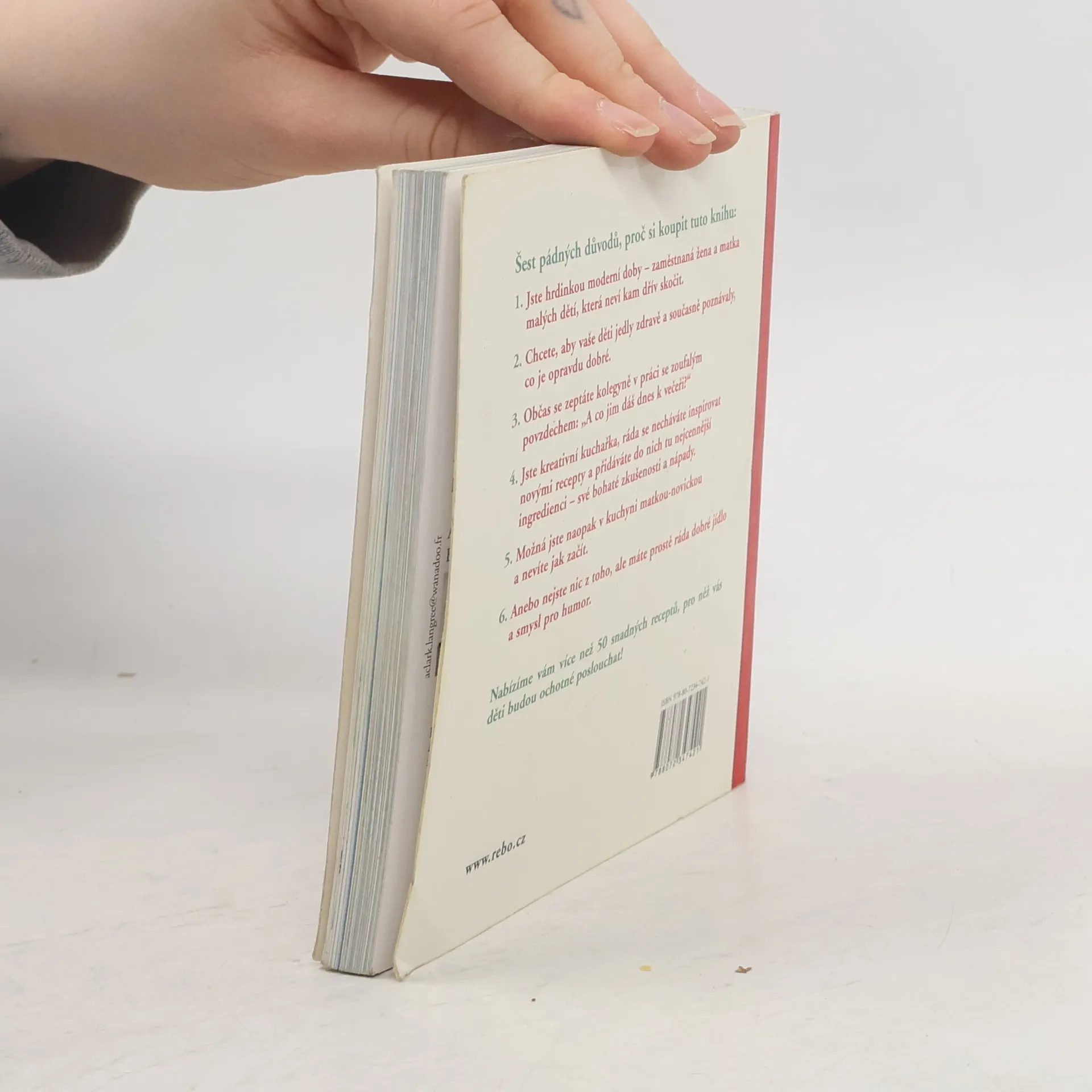 Pádné důvody, proč si koupit tuto knihu: •Jste hrdinkou moderní doby - zaměstnaná žena a matka malých dětí, která neví, kam dřív skočit. •Chcete, aby vaše děti jedly zdravě a současně poznávaly, co je opravdu dobré. •Občas se zeptáte kolegyně v práci se zoufalým povzdechem: "A co jim dáš dnes k večeři?" •Jste kreativní kuchařka, ráda se necháváte inspirovat novými recepty a přidáváte do nich tu nejcennější ingredienci - své bohaté zkušenosti a nápady. •Možná jste naopak v kuchyni matkou-novickou a nevíte, jak začít. •Anebo nejste nic z toho, ale máte prostě ráda dobré jídlo a smysl pro humor. Nabízíme vám více než 50 snadných receptů, pro něž vás děti budou ochotné poslouchat