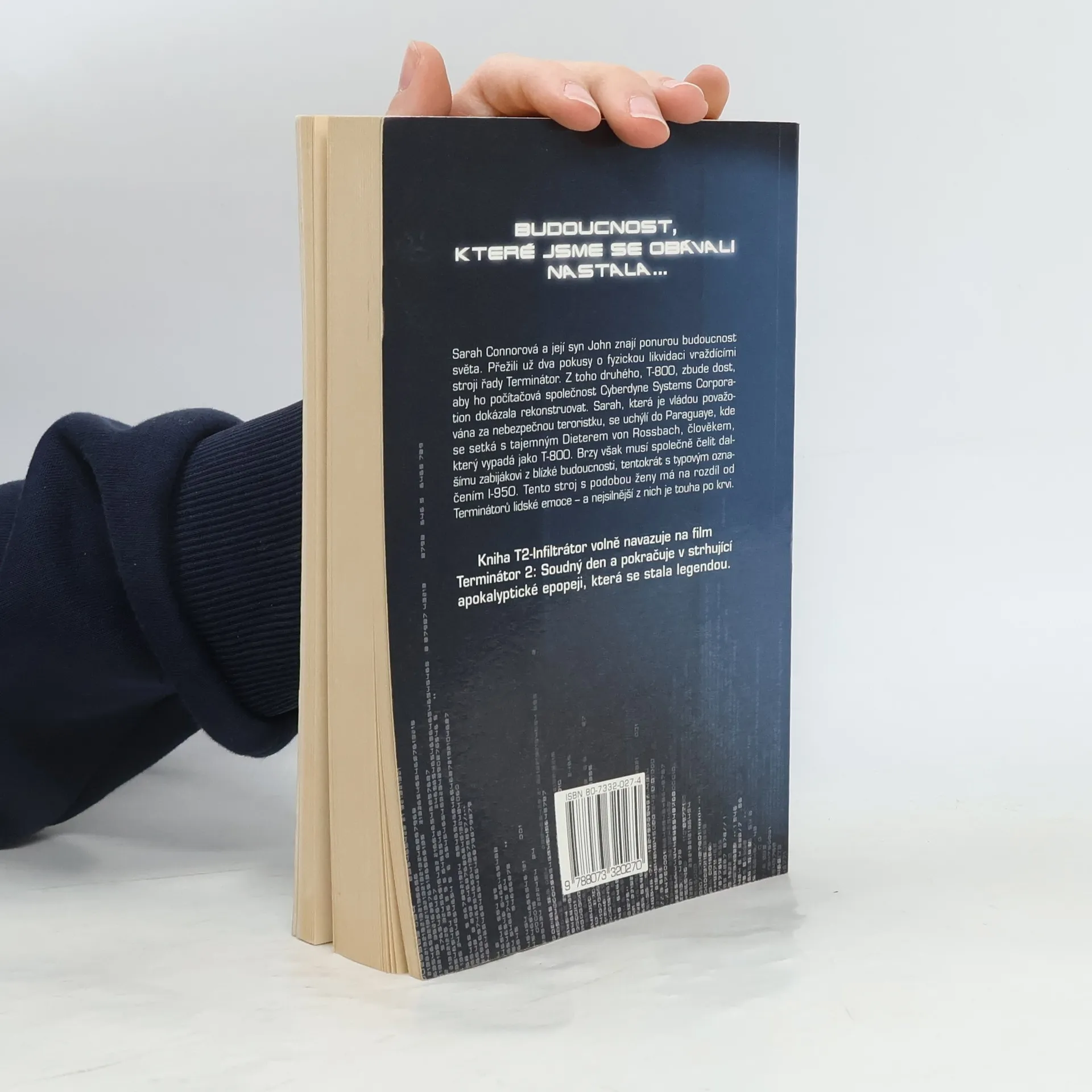 Sarah Connorová a její syn John znají ponurou budoucnost světa. Přežili už dva pokusy o fyzickou likvidaci vraždícími stroji řady Terminátor. Z toho druhého, T-800, zbude dost, aby ho počítačová společnost Cyberdyne Systems Corporation dokázala rekonstruovat. Sarah, která je vládou považována za nebezpečnou teroristku, se uchýlí do Paraguaye, kde se setká s tajemným Dieterem von Rossbachem, člověkem, který vypadá jako T-800. Brzy však musí společně čelit dalšímu zabijákovi z blízké budoucnosti, tentokrát s typovým označením I-950. Tento stroj s podobou ženy má na rozdíl od Terminátorů lidské emoce – a nejsilnější z nich je touha po krvi. Kniha T2: Infiltrátor volně navazuje na film Terminátor 2: Soudný den a pokračuje tak ve strhující apokalyptické epopeji, která se stala legendou…