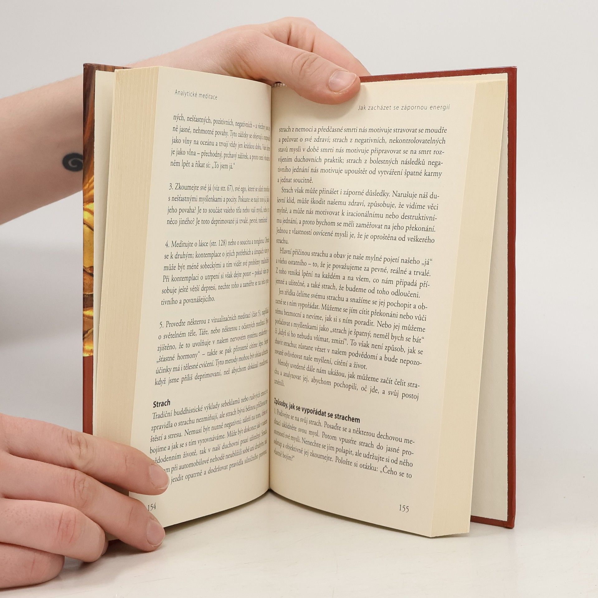 Dnes meditaci provádějí pravidelně miliony obyvatel západních zemí, lékaři ji předepisují pacientům jako způsob, jak si poradit s bolestí, srdečními chorobami, depresí a jinými problémy, vědci studují její účinky na mozek a imunitní systém. Existují tucty knih, nahrávek, cédeček a webových stránek o meditaci a meditační kurzy jsou k dispozici ve většině velkoměst. První část této knihy, Myšlení a meditace, vysvětluje, proč lidé meditují a jaký z toho mají prospěch. Druhá část, Vytvoření meditační praxe, nabízí základní informace a rady začátečníkům. Zbytek knihy popisuje konkrétní meditační metody, rozdělené do čtyř částí: Meditace o mysli, Analytické meditace, Vizualizační meditace a Modlitby a jiné zbožné praktiky. Každou techniku zahajuje preambule, která poskytuje fakta o pozadí meditace, ukazuje, jaký z ní plyne prospěch, vysvětluje, jak ji nejlépe provádět, a objasňuje její praktické používání. Nakonec je tu slovníček termínů a seznam knih jako návrh na další četbu.