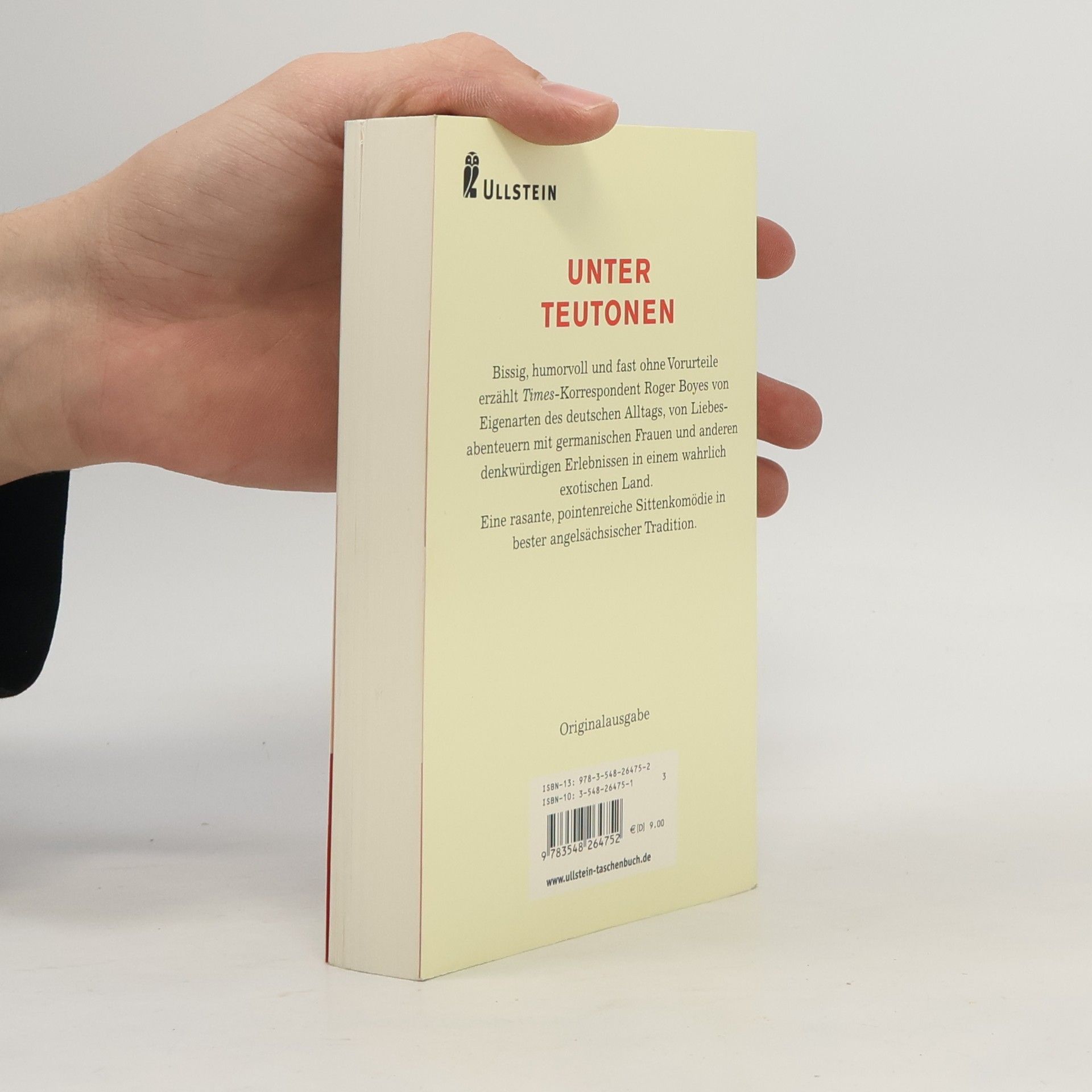 'Plötzlich kreuzte ein Exemplar des modernen deutschen Heldentums unseren Weg: der Fahrrad-Fascho. Pinkfarbener Helm, orangene Outdoor-Jacke, enge Hose. Man roch, daß er 40 Kilometer durch den Wald gebraust und unterwegs ins Büro war, wo er seine Uniform hemmungslos weiter tragen würde. Als ich hörte, wie der Müllwagen sein Rad zermalmte, huschte ein Lächeln über meine Lippen.' Bissig, humorvoll und fast ohne Vorurteile berichtet Roger Boyes von Eigenarten des deutschen Alltags, von Liebesabenteuern mit germanischen Frauen und anderen denkwürdigen Erlebnissen in einem wahrlich exotischen Land.