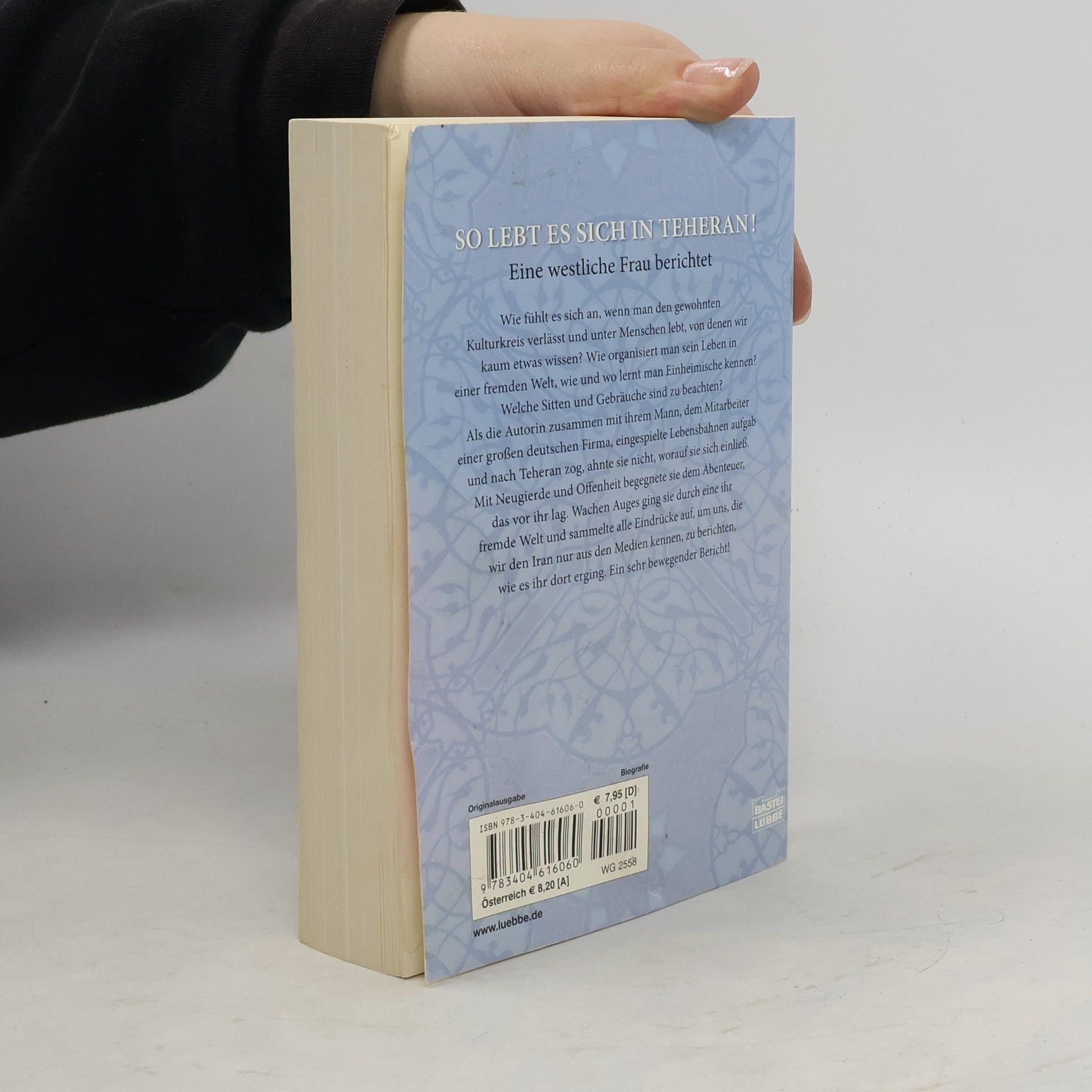 Wie fühlt es sich an, wenn man den gewohnten Kulturkreis verlässt und unter Menschen lebt, von denen wir kaum etwas wissen? Wie organisiert man sein Leben in einer fremden Welt, wie und wo lernt man Einheimische kennen? Welche Sitten und Gebräuche sind zu beachten? Als die Autorin zusammen mit ihrem Mann, einem Mitarbeiter von Daimler-Chrysler, eingespielte Lebensbahnen aufgab und nach Teheran zog, ahnte sie nicht, worauf sie sich einließ. Mit Neugierde und Offenheit begegnete sie dem Abenteuer, das vor ihr lag. Wachen Auges ging sie durch eine ihr fremde Welt und sammelte alle Eindrücke auf, um uns, die wir den Iran nur aus den Medien kennen, zu berichten, wie es ihr dort erging. Ein sehr bewegender Bericht!