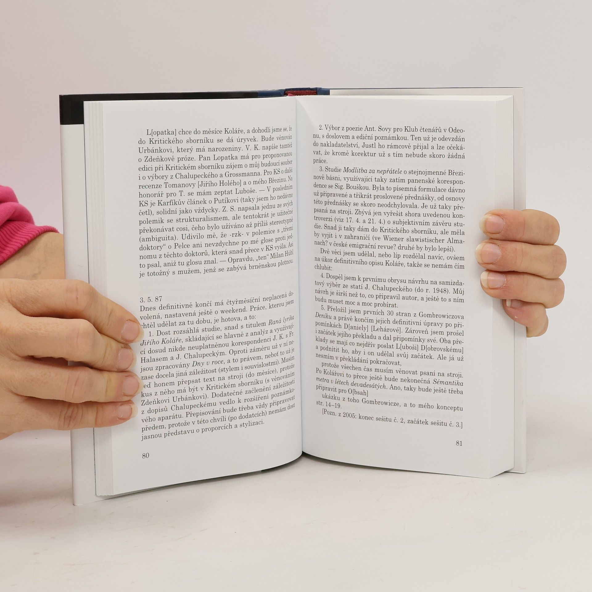 V letech 1985–1989 si Miroslav Červenka zaznamenával jakýsi „duchovní deník“, v němž se vyrovnával s událostmi přicházejícími zvenčí i s událostmi svého vlastního osobnostního zrání. V deníku se podivuhodně smísilo bytostné zaujetí otázkami poezie a umění vůbec, poetologická a versologická erudice s vyhraněným postojem občanským, nepřipouštějícím žádné kompromisy s panující mocí. To vše a ještě mnohé jiné, komentované podněty z široké oblasti kultury, filozofie, náboženství, z historie i současnosti, a ovšem též nezanedbatelné živé a přesné dojmy z přírody, to vše se v Červenkově Záznamníku prolnulo s nevšední bezprostředností. (...) Záznamy z konce osmdesátých let nabývají na dramatičnosti. K „péči o duši“ přibyla potřeba jednat. Rozjíždějí se mnohé aktivity, samozřejmě neoficiální, přednášky, diskuse na kroužcích pořádaných po bytech, večerní univerzita pro ty, kterým by byla za daných poměrů odepřena. O tom všem a také o chování lidí v té pohnuté době, o smýšlení a chování statečném i nízkém zanechal Červenkův Záznamník přísné, ale spravedlivé svědectví. Událostmi na podzim roku 1989 Červenkovy záznamy končí.