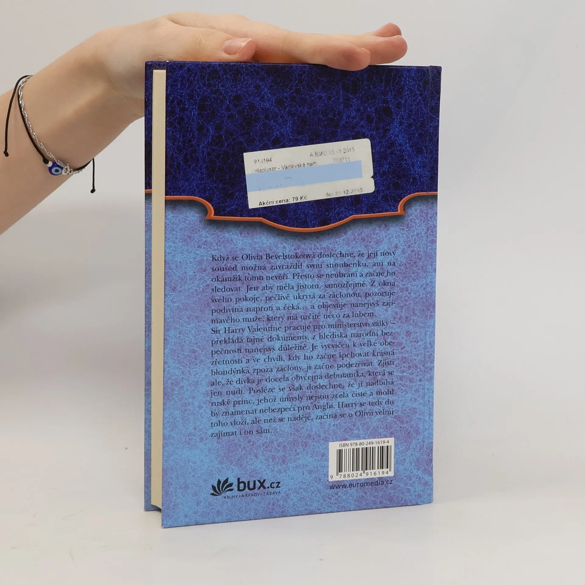 Když se Olivia Bevelstokeová doslechne, že její nový soused možná zavraždil svou snoubenku, ani na okamžik tomu nevěří. Přesto se neubrání a začne ho sledovat. Jen aby měla jistotu, samozřejmě. Z okna svého pokoje, pečlivě ukrytá za záclonou, pozoruje podivína naproti a čeká… a objevuje nanejvýš zajímavého muže, který něco za lubem určitě má. Sir Harry Valentine pracuje pro ministerstvo války – překládá tajné dokumenty, z hlediska národní bezpečnosti nanejvýš důležité. Je vycvičen k velké obezřetnosti a ve chvíli, kdy ho začne špehovat krásná blondýnka zpoza záclony, ji začne podezřívat. Zjistí ale, že dívka je docela obyčejná debutantka, která se jen nudí. Posléze se však doslechne, že jí nadbíhá ruský princ, jehož úmysly nejsou zcela čisté a mohl by znamenat nebezpečí pro Anglii. Harry se tedy do toho vloží, ale než se naděje, začíná se o Olivii velmi zajímat i on sám…