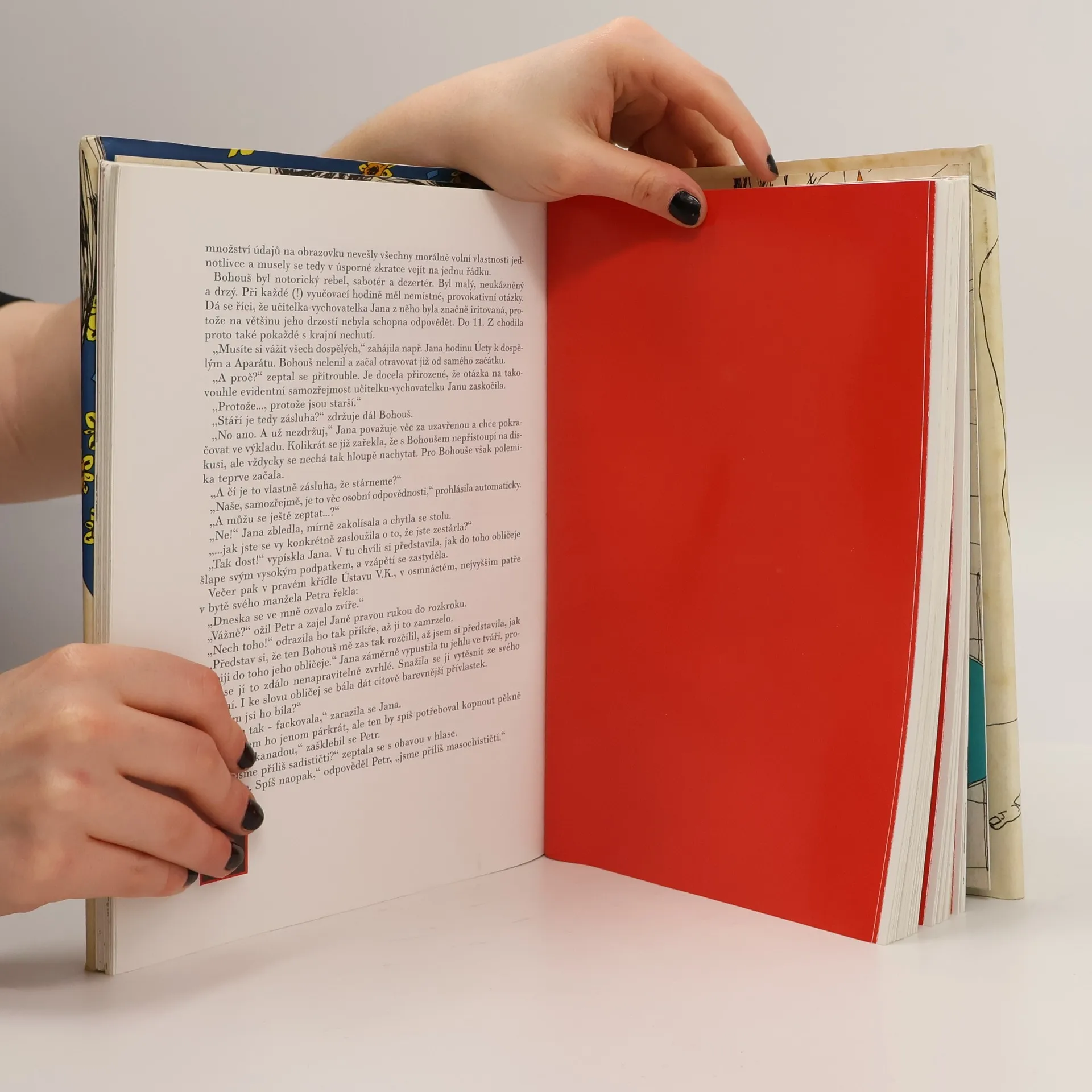 Román Kamila Vondráška tvoří s fascinujícími ilustracemi Borise Jirků dokonalou jednotu. Vytříbený humor, sex a horor. Nadčasová studie lidského druhu, která nastavuje ironické zrcadlo všem politickým režimům a "upřímným" mezilidským vztahům. Románové postavy často nesou nezastírané narážky na karikované antihrdiny typu Dalíka (Salvador Dali), Freda (Sigmund Freud) či Kuchota (don Quichot). Mnohovrstevnatý román vykresluje jednotlivé příběhy svých postav až k závěrečné katarzi, kde se setká každý s každým, přičemž pojem "času" zde hraje svou osobitou roli