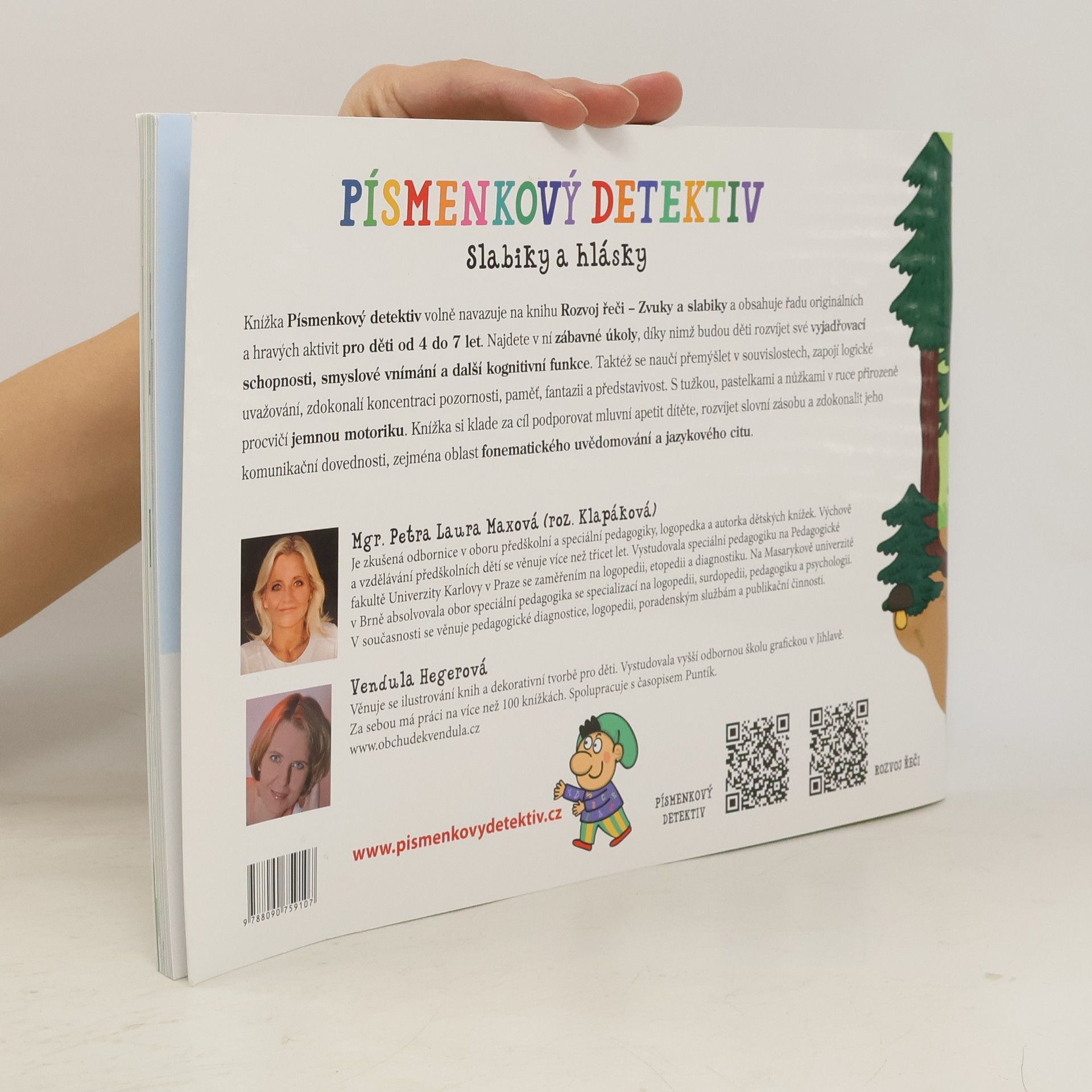 Knížka Písmenkový detektiv volně navazuje na knihu Rozvoj řeči(Albatros 2018) a obsahuje řadu originálních a hravých aktivit pro děti od 4 do 7 let.Najdete v ní zábavné úkoly, díky nimž budou děti rozvíjet své vyjadřovací schopnosti, smyslové vnímání a další kognitivní funkce. Taktéž se naučí přemýšlet v souvislostech, zapojí logické uvažování, zdokonalí koncentraci pozornosti, paměť, fantazii a představivost. S tužkou, pastelkami a nůžkami v ruce přirozeně procvičí jemnou motoriku. Knížka si klade za cíl podporovat mluvní apetit dítěte, rozvíjet slovní zásobu a zdokonalit komunikační dovednosti, zejména oblast fonematického uvědomování a jazykového citu.