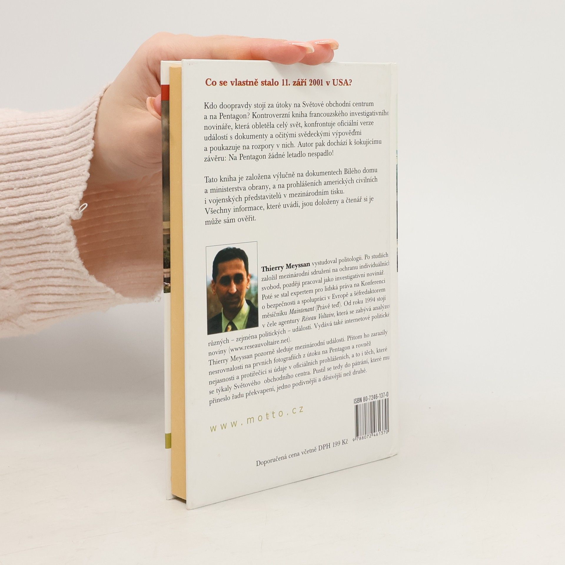 Co se vlastně stalo 11. září 2001 v USA? Kdo doopravdy stojí za útoky na Světové obchodní centrum a na Pentagon? Kontroverzní kniha francouzského investigativního novináře, která obletěla celý svět, konfrontuje oficiální verze událostí s dokumenty a očitými svědeckými výpověďmi a poukazuje na rozpory v nich. Autor pak dochází k šokujícímu závěru: Na Pentagon žádné letadlo nespadlo! Tato kniha je založena výlučně na dokumentech Bílého domu a ministerstva obrany, a na prohlášeních amerických civilních i vojenských představitelů v mezinárodním tisku. Všechny informace, které uvádí, jsou doloženy a čtenář si je může sám ověřit.