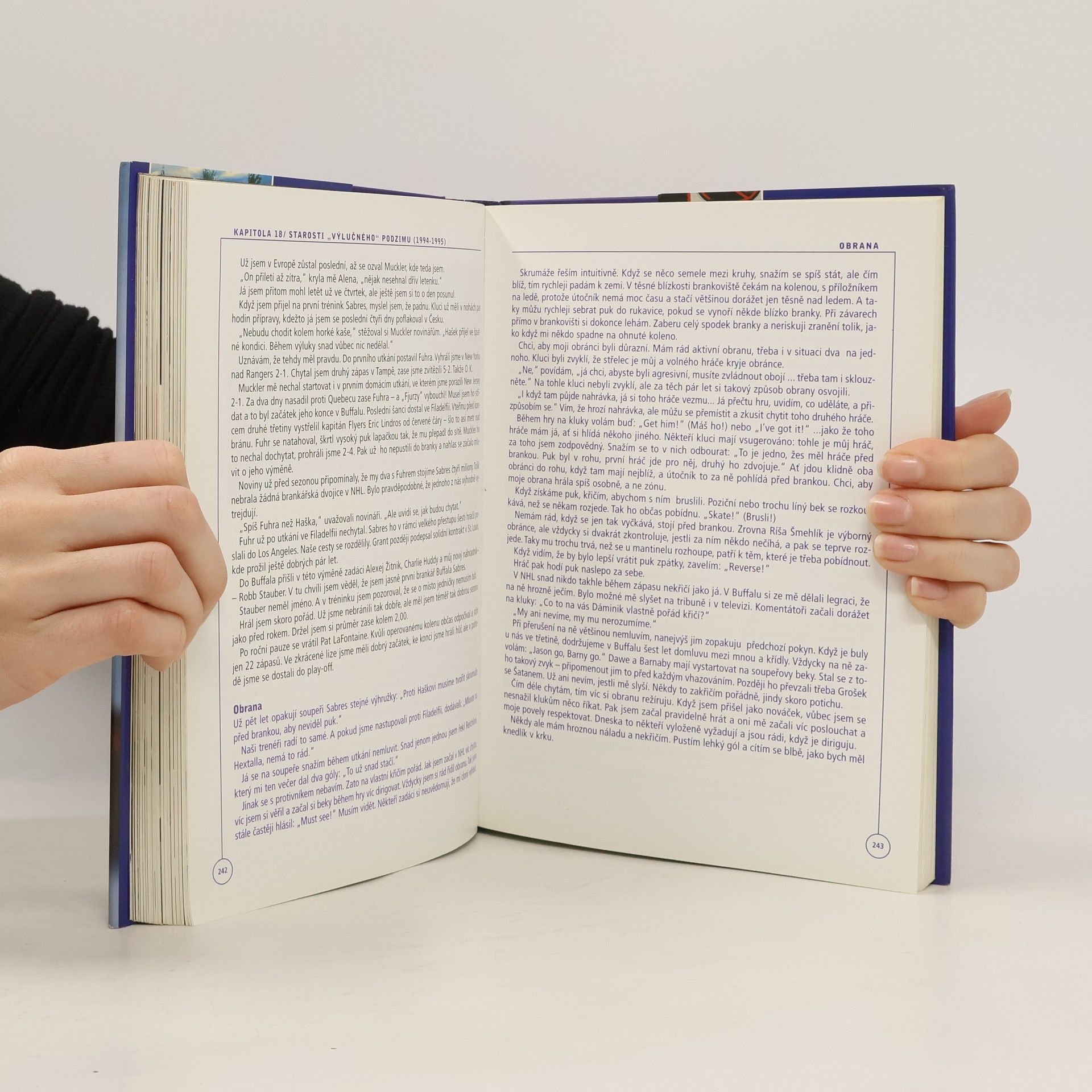 Osobní zpověď českého reprezentačního brankáře a jednoho z nejlepších světových hokejistů. Ze "spojení sil" populárního televizního komentátora a jednoho z nejlepších současných světových sportovců vznikla kniha, jež je autobiografickou zpovědí v současné době asi nejpopulárnějšího českého sportovce. Chronologicky řazené vyprávění o dětství, hokejových začátcích, působení v čs. hokejové lize i v kanadsko-americké NHL je ilustrováno množstvím především barevných fotografií. Skutečně kvalitní autobiografie, jejíž uvedení na trh bylo spojeno s mohutnou reklamní kampaní..... celý text