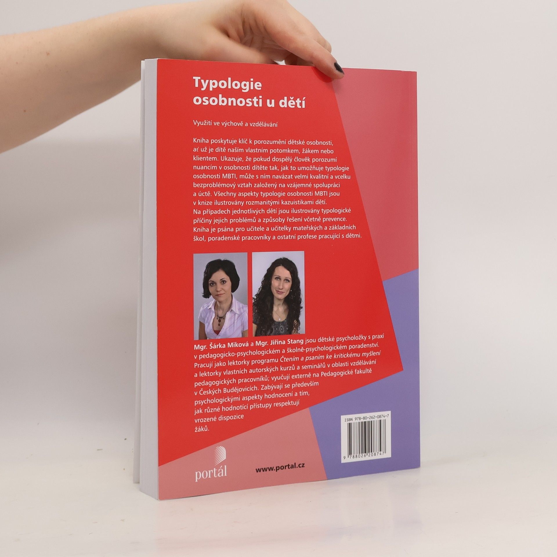 Využití ve výchově a vzdělávání. Kniha poskytuje klíč k porozumění dětské osobnosti, ať už je naším vlastním potomkem, žákem nebo klientem. Ukazuje, že pokud dospělý člověk porozumí nuancím v osobnosti dítěte tak, jak to umožňuje typologie osobnosti MBTI, může s ním navázat velmi kvalitní a v celku bezproblémový vztah založený na vzájemné spolupráci a úctě. Všechny aspekty typologie osobnosti MBTI jsou v knize ilustrovány rozmanitými kazuistikami dětí. Na případech jednotlivých dětí budou ilustrovány typologické příčiny jejich problémů a způsoby řešení včetně prevence. Kniha je psána pro učitele a učitelky mateřských a základních škol, poradenské pracovníky a ostatní profese pracující s dětmi.