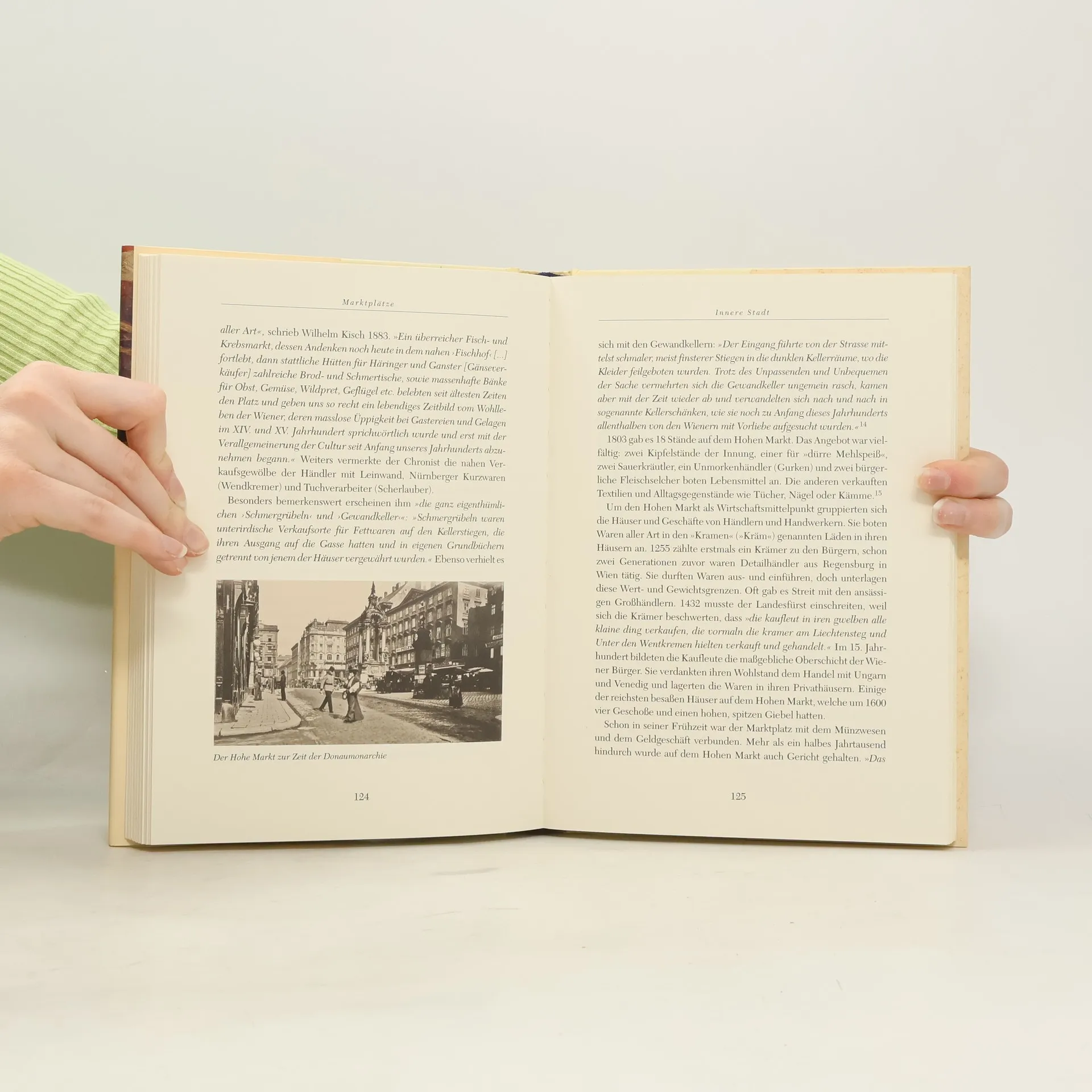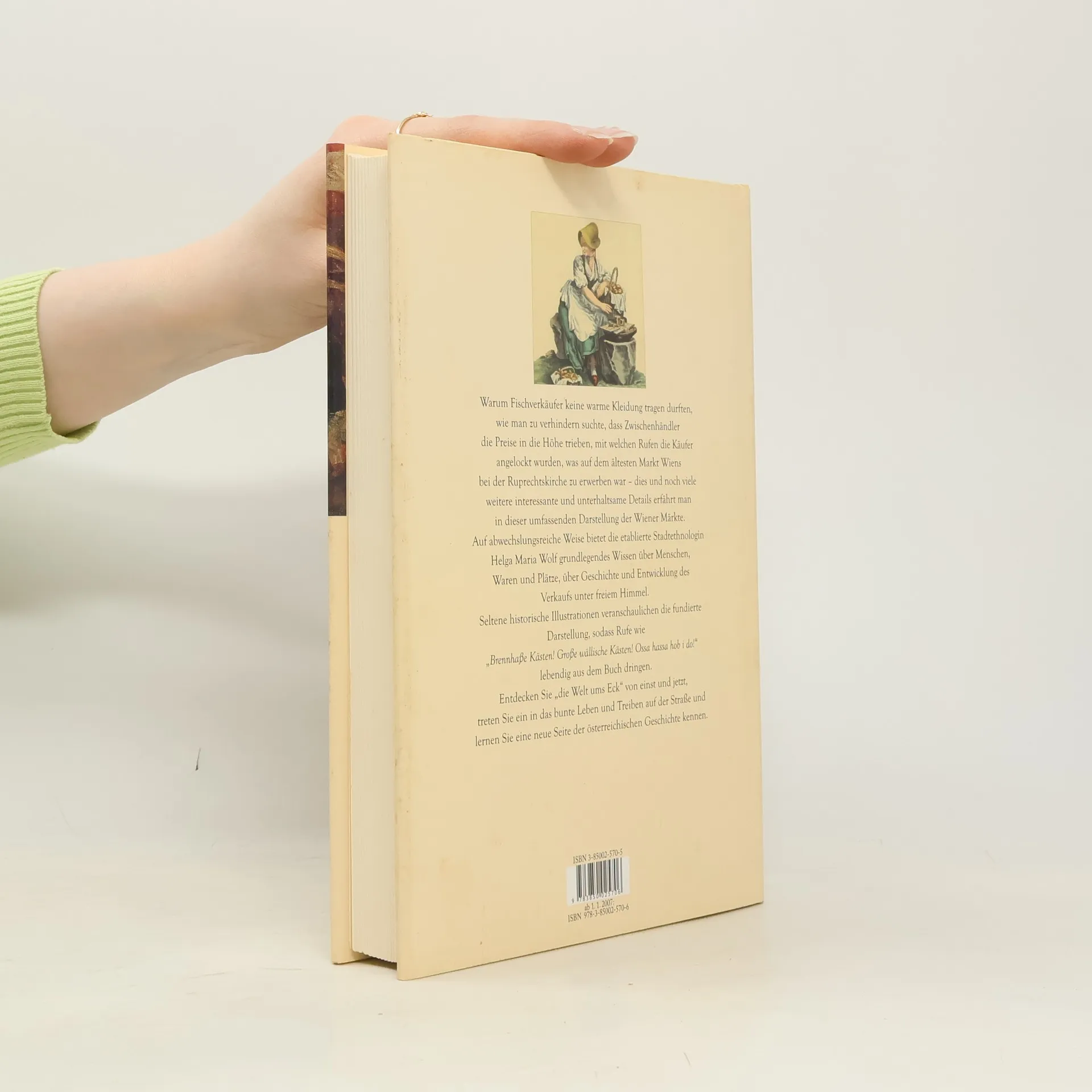 Fliegende Händler, fahrende Leute: Vom bunten Leben in Alt-Wien Dieses Buch lädt zu einem Streifzug durch Wiener Märkte und ihre Geschichte ein. Es liegt ein rundes Jahrtausend zurück, als man am Kienmarkt bei St. Ruprecht, der ältesten bestehenden Kirche Wiens, Kienspäne zur Beleuchtung feilbot. Die Autorin erzählt von Fischhändlern, die keine Winterkleidung tragen durften, damit sie ihre Ware möglichst schnell verkauften, vom Krebsenrichter, der die als Fastenspeise beliebten Flusskrebse kontrollierte und die schönsten für die kaiserliche Tafel auswählte, vom Leben und Handeln im Mittelalter, Barock und Biedermeier, vom Wandel der Lebensmittel und kulinarischen Bräuche, von Herrschern, Bürgern und „Wiener Volkstypen“. Das unterhaltsame Buch ist solid recherchiert, reich illustriert und behandelt fünf große Kapitel: Menschen, Waren, Marktplätze, Jahrmärkte, Gelegenheitsmärkte.