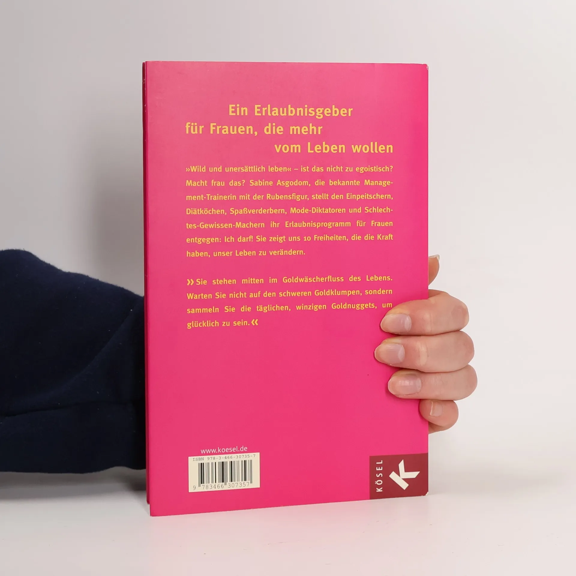 Ein Erlaubnisgeber für Frauen, die mehr vom Leben wollen Schluss mit dem Trendterror und der ständigen Verunsicherung. Schluss mit dem Vermiesen und Verbieten, mit dem Verkleiden und Verbiegen. Sabine Asgodom, die bekannte Management-Trainerin mit der Rubensfigur, stellt den Einpeitschern, Diätköchen und Schlechtes-Gewissen-Machern ihr Erlaubnis-Programm für Frauen entgegen: Du darfst! »Sei du selbst und hab Spaß dabei« – lautet die Botschaft ihres neuen Buches, das das Leben vieler Frauen verändern wird. Es gibt keine Autorität, die uns vorschreiben kann, wie wir zu leben haben. »Sei du selbst und hab Spaß dabei!« lautet die Botschaft von Deutschlands bekanntester Management-Trainerin Sabine Asgodom. Ihr neues Erlaubnisprogramm für Frauen heißt: Du darfst.