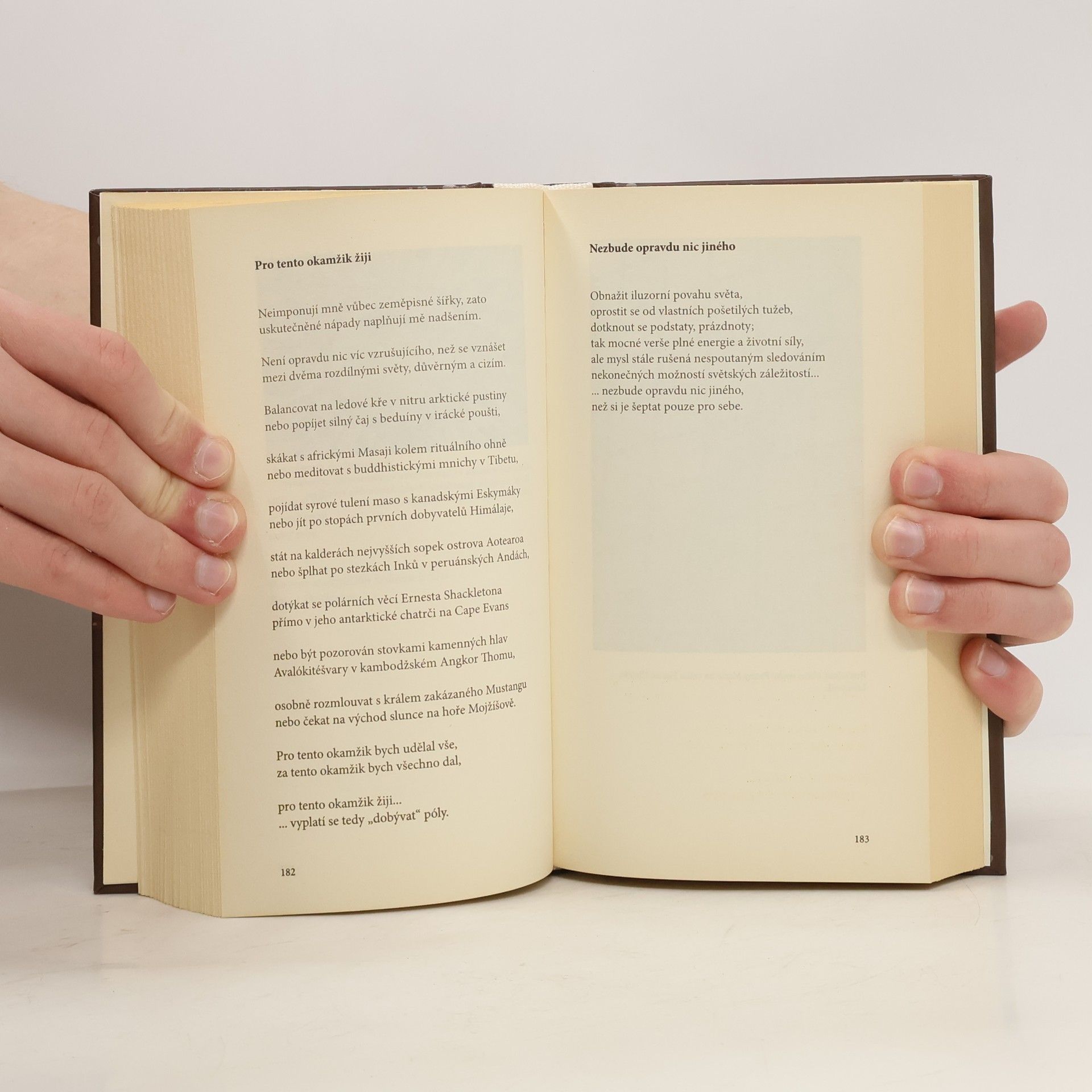 Kniha obsahuje mnoho osobních prožitků. Tak osobních, že mi trvalo dost let, než jsem se přinutil je vytáhnout z deníků, četných poznámek, kalendářů i z volných lístků a v poněkud specifické formě ventilovat. Ostatní moje knihy byly spíše faktografickým, neosobním vyprávěním o mých výpravách a expedicích. Tato kniha naopak seskupuje množství básní, které vznikaly v průběhu mnoha let, a zážitků do značné míry silně subjektivních. A protože jsem při výpravách a expedicích dost zakusil a protože si člověk takové věci instinktivně nechává raději pro sebe (za což jsem byl kritiky někdy kritizován), pokládal jsem za vyloučené, že bych se při psaní vyhnul nepřístojným výlevům svých citů. Knihu jsem rozdělil do čtyř částí (světových stran). Každá světová strana reprezentuje určitou část světa. Východ je ovlivněn spíše buddhistickou filozofií, jih a sever reprezentují emoce a zážitky z antarktických a arktických expedic, západ se věnuje existenci v naší současné společnosti. Ať je to jak chce, dokončil jsem, co jsem si předsevzal. Knížka přináší prostou pravdu o mně, mých citech, vjemech, zážitcích, zkušenostech a poznání.