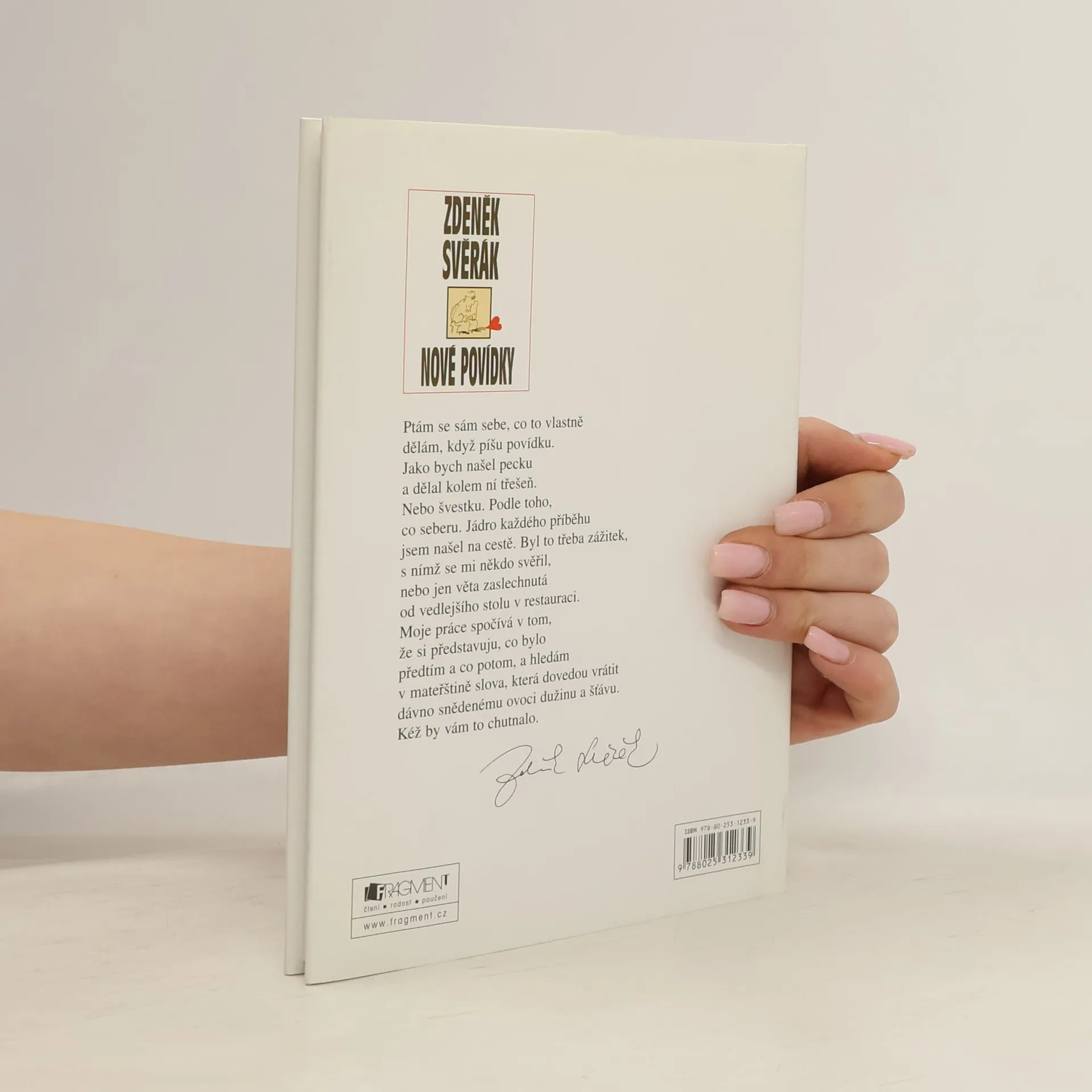 Ptám se sám sebe, co to vlastně dělám, když píšu povídku. Jako bych našel pecku a dělal kolem ní třešeň. Nebo švestku. Podle toho, co seberu. Jádro každého příběhu jsem našel na cestě. Byl to třeba zážitek, s nímž se mi někdo svěřil, nebo jen věta zaslechnutá od vedlejšího stolu v restauraci. Moje práce spočívá v tom, že si představuju, co bylo před tím a co potom, a hledám v mateřštině slova, která dovedou vrátit dávno snědenému ovoci dužinu a šťávu. Kéž by vám to chutnalo. Zdeněk Svěrák