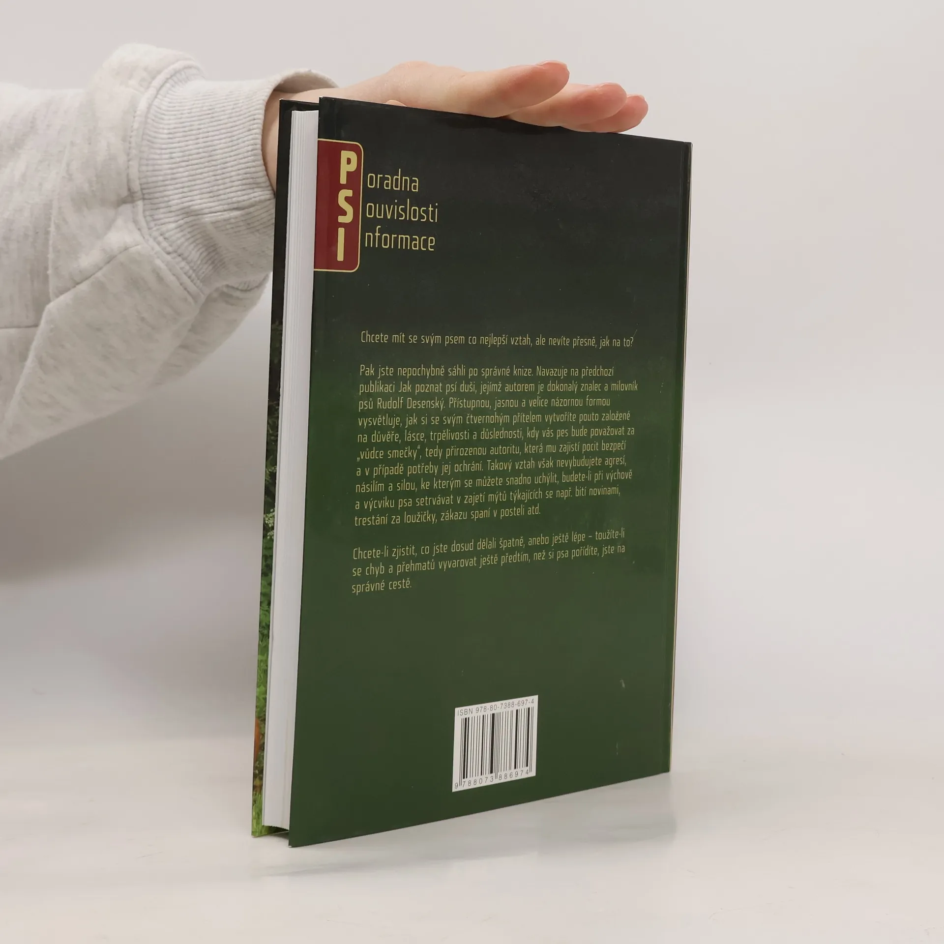 Chcete mít se svým psem co nejlepší vztah, ale nevíte přesně, jak na to? Pak jste nepochybně sáhli po správné knize. Navazuje na předchozí publikaci Jak poznat psí duši, jejímž autorem je dokonalý znalec a milovník psů Rudolf Desenský. Přístupnou, jasnou a velice názornou formou vysvětluje, jak si se svým čtvernohým přítelem vytvoříte pouto založené na důvěře, lásce, trpělivosti a důslednosti, kdy vás pes bude považovat za „vůdce smečky“, tedy přirozeno autoritu, která mu zajistí pocit bezpečí a v případě potřeby jej ochrání. Takový vztah však nevybudujete agresí, násilím a silou, ke kterým se můžete snadno uchýlit, budete-li při výchově a výcviku psa setrvávat v zajetí mýtů týkajících se např. bití novinami, trestání za loužičky, zákazu spaní v posteli atd. nakladatel XYZ rok vydání 2012 vydání 2. vyd. místo Praha stran 243 rozměry 23 cm poznámka il. ISBN 978-80-7388-697-4