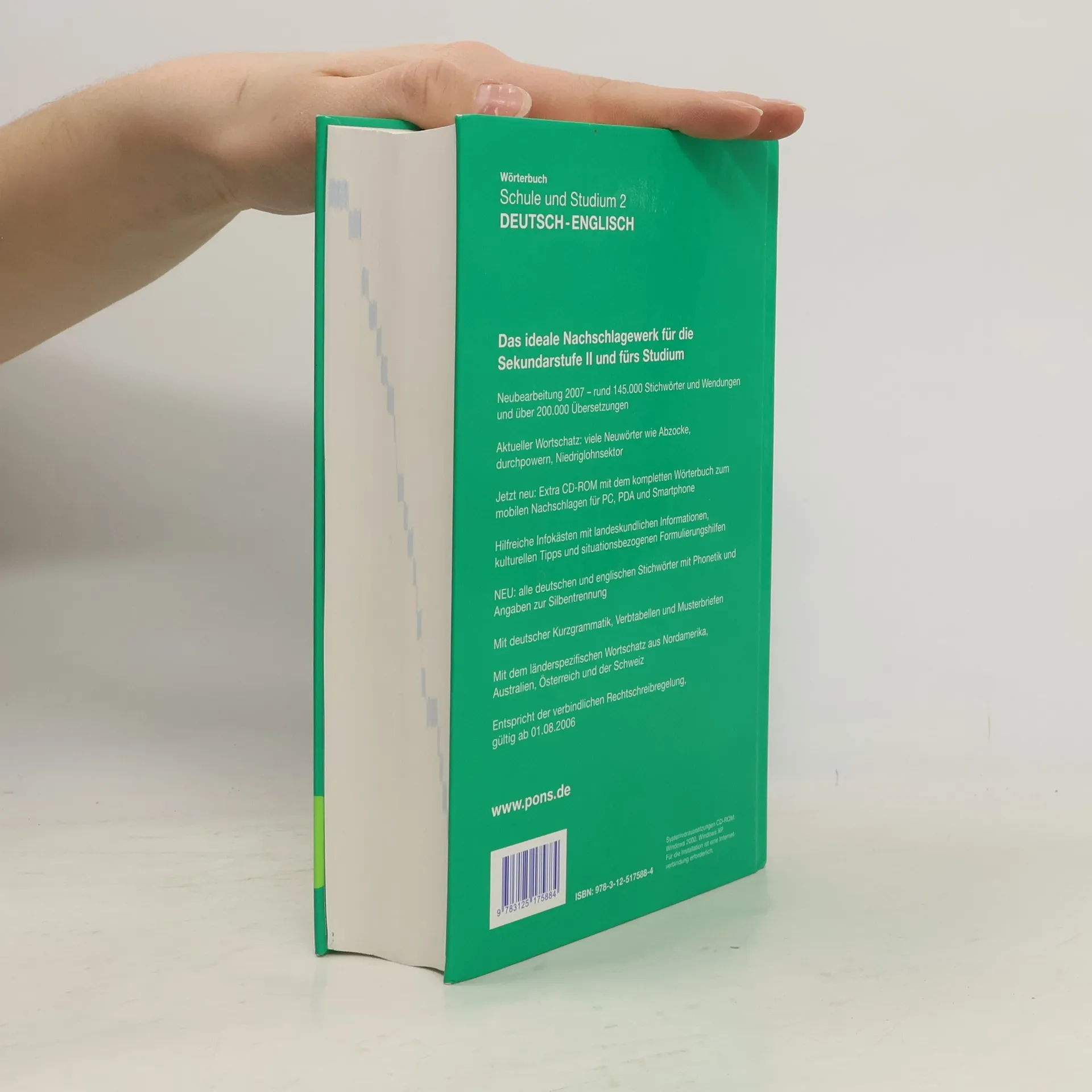 Das ideale Nachschlagewerk für die Sekundarstufe II und fürs Studium! - Band II - Ausgabe Rheinland-Pfalz! - Rund 145.000 Stichwörter und Wendungen und über 200.000 Übersetzungen. - Aktueller Wortschatz mit vielen Beispielsätzen. - Von der Allgemeinsprache bis zur modernen Fachsprache. - Zahlreiche Infokästen mit landeskundlichen Informationen und situationsbezogenen Formulierungshilfen. - Besonders übersichtliche Gestaltung umfangreicher Einträge. - Musterbriefe mit ausführlichen Formulierungshilfen im Anhang. - Berücksichtigt den Wortschatz aus Österreich und der Schweiz.