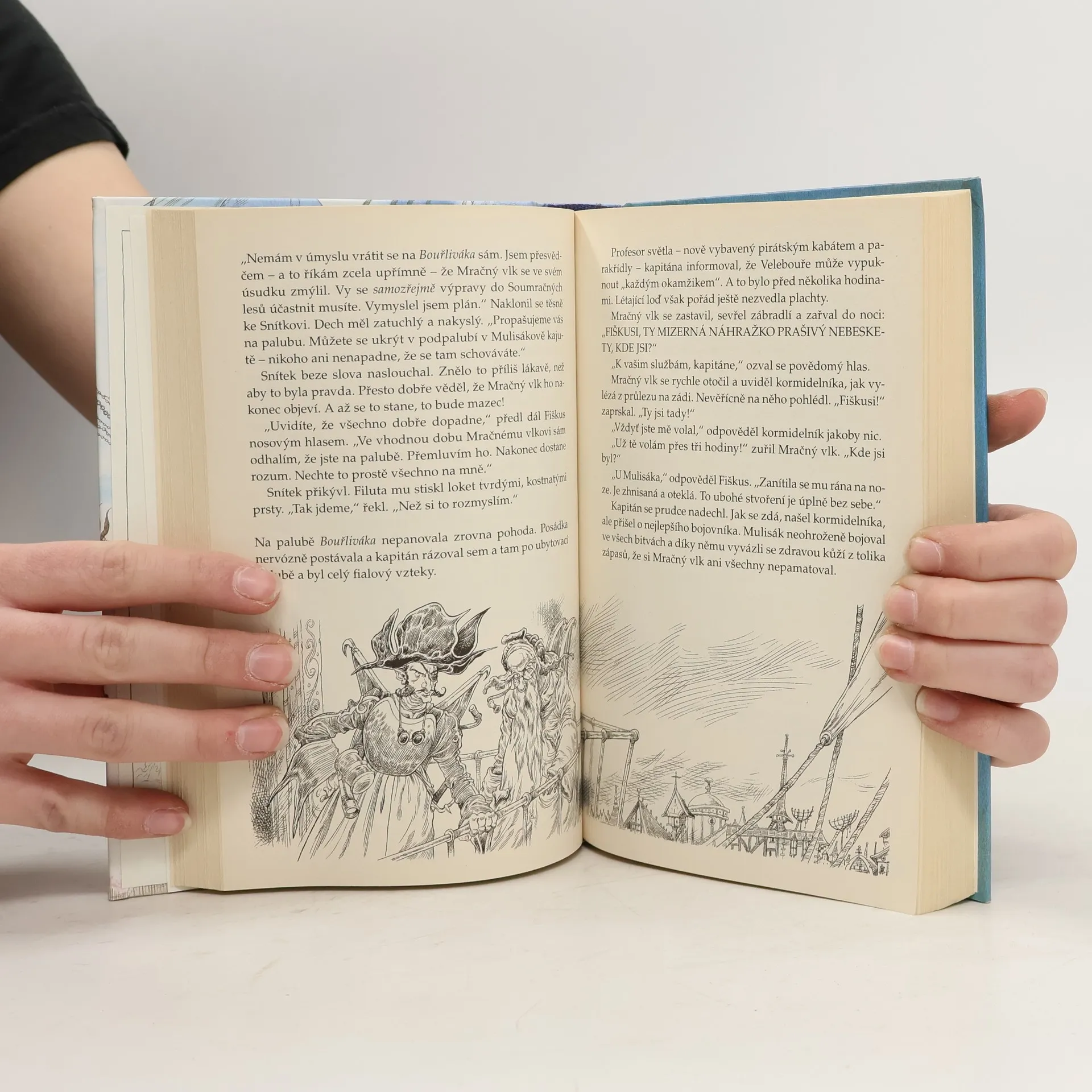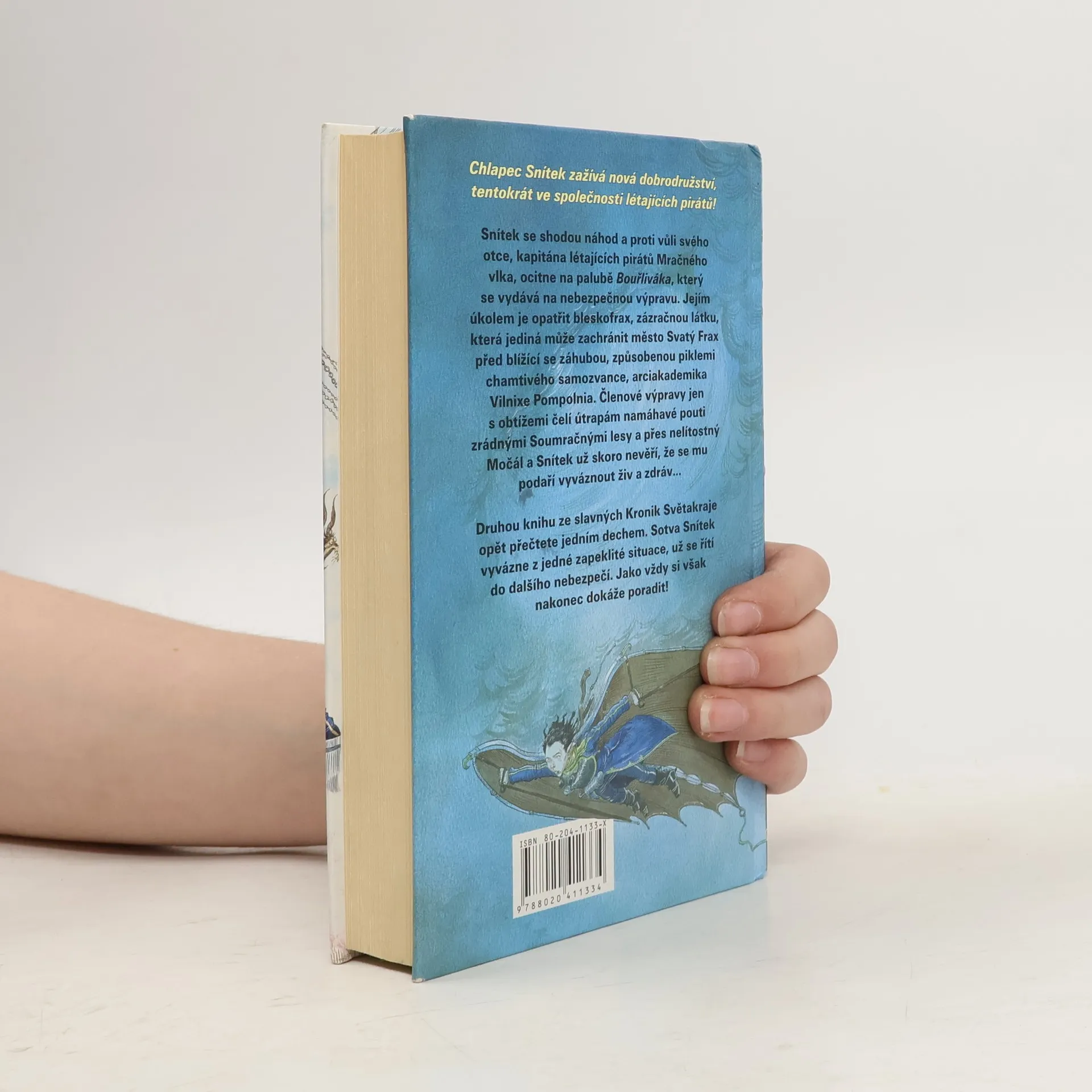 Chlapec Snítek zažívá nová dobrodružství, tentokrát ve společnosti létajících pirátů! Snítek se shodou náhod a proti vůli svého otce, kapitána létajících pirátů Mračného vlka, ocitne na palubě Bouřliváka, který se vydává na nebezpečnou výpravu. Jejím úkolem je opatřit bleskofrax, zázračnou látku, která jediná může zachránit město Svatý Frax před blížící se záhubou, způsobenou piklemi chamtivého samozvance, arciakademika Vilnixe Pompolnia. Členové výpravy jen s obtížemi čelí útrapám namáhavé pouti zrádnými Soumračnými lesy a přes nelítostný Močál a Snítek už skoro nevěří, že se mu podaří vyváznout živ a zdráv… Druhou knihu ze slavných Kronik Světakraje opět přečtete jedním dechem. Sotva Snítek vyvázne z jedné zapeklité situace, už se řítí do dalšího nebezpečí. Jako vždy si však nakonec dokáže poradit!... celý text