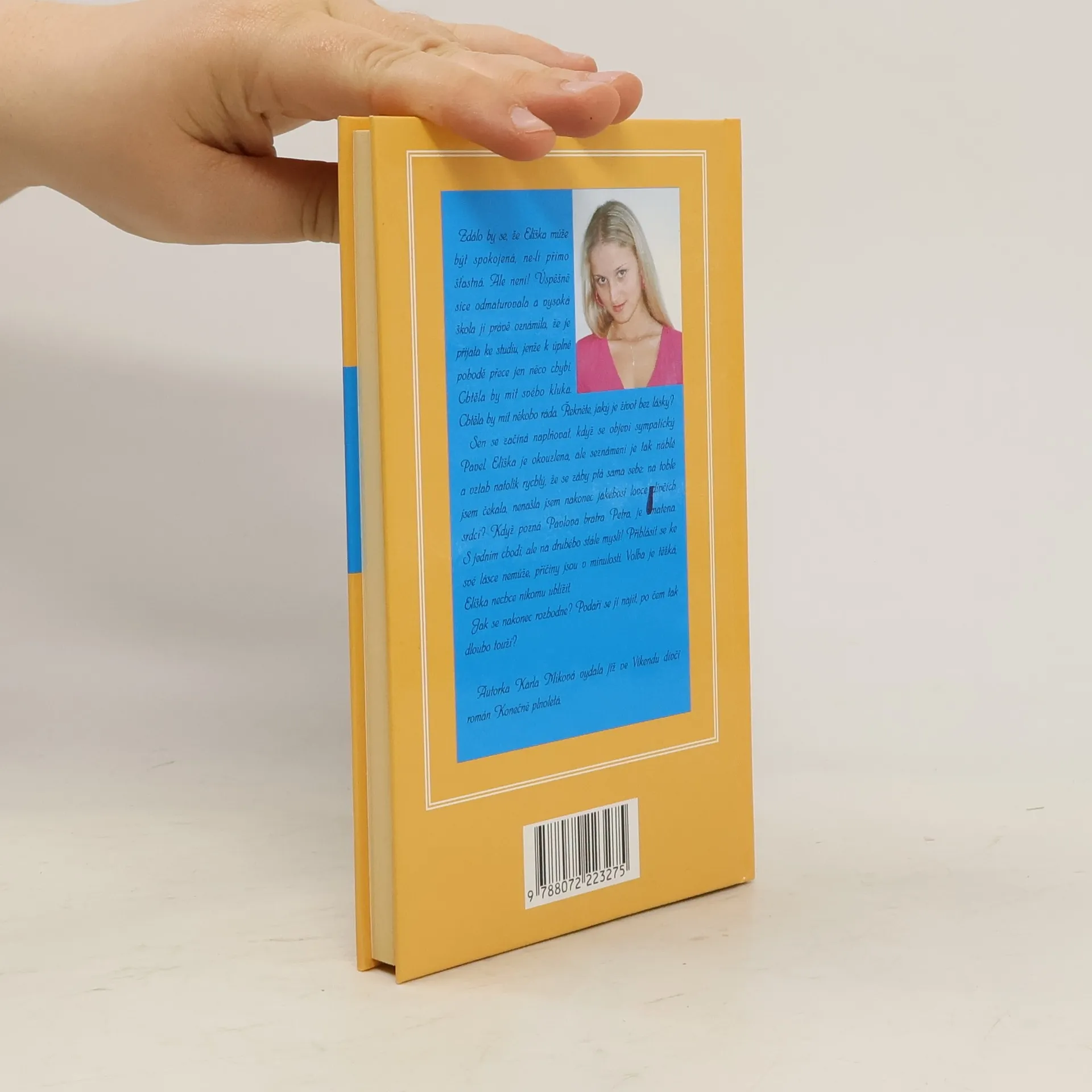 Zdálo by se, že Eliška může být spokojená, ne-li šťastná. Ale není! Úspěšně sice odmaturovala a vysoká škola jí právě oznámila, že je přijata ke studiu, jenže k úplné pohodě jí přece jen něco chybí. Chtěla by mít svého kluka. Chtěla by mít někoho ráda. Sen se začíná naplňovat, když se objeví sympatický Pavel. Eliška je okouzlena, ale seznámení je tak náhlé a vztah natolik rychlý, že se záhy ptá sama sebe: na tohle jsem čekala, nenašla jsem nakonec jakéhosi lovce dívčích srdcí. Když pozná Pavlova bratra Petra, je zmatena. S jedním chodí, ale na druhého stále myslí. Přihlásit se ke své lásce nemůže, příčiny jsou v minulosti. Volba je těžká, Eliška nechce nikomu ublížit..