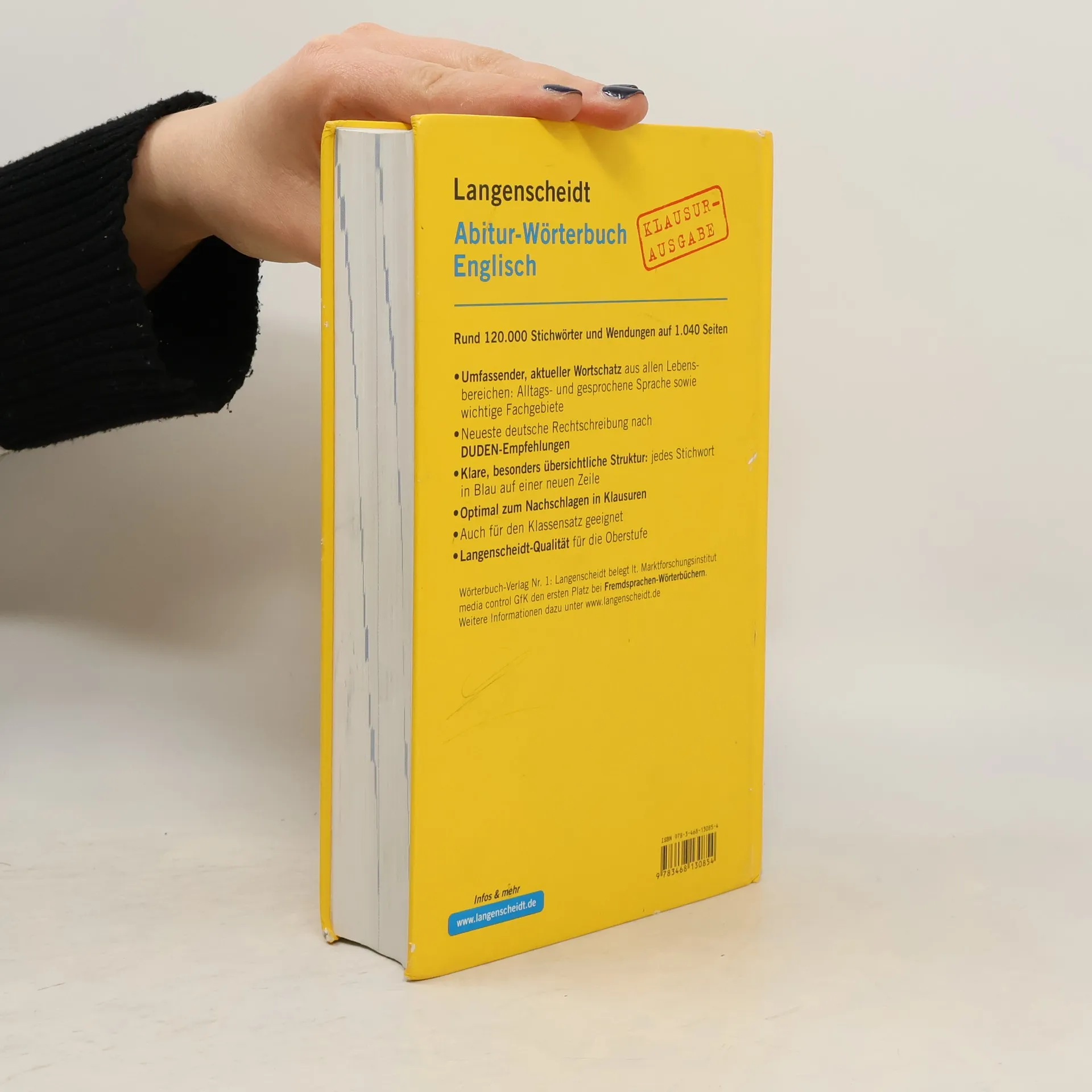 Die spezielle Ausgabe des Abitur-Wörterbuchs Englisch ohne Hilfestellungen für die Prüfungssituation. Rund 120.000 Stichwörter und Wendungen. Ohne Prüfungstrainer, Info-Fenster, Landkarten und Sonderseiten – zum bedenkenlosen Einsatz in Klausuren und in der Abschlussprüfung.