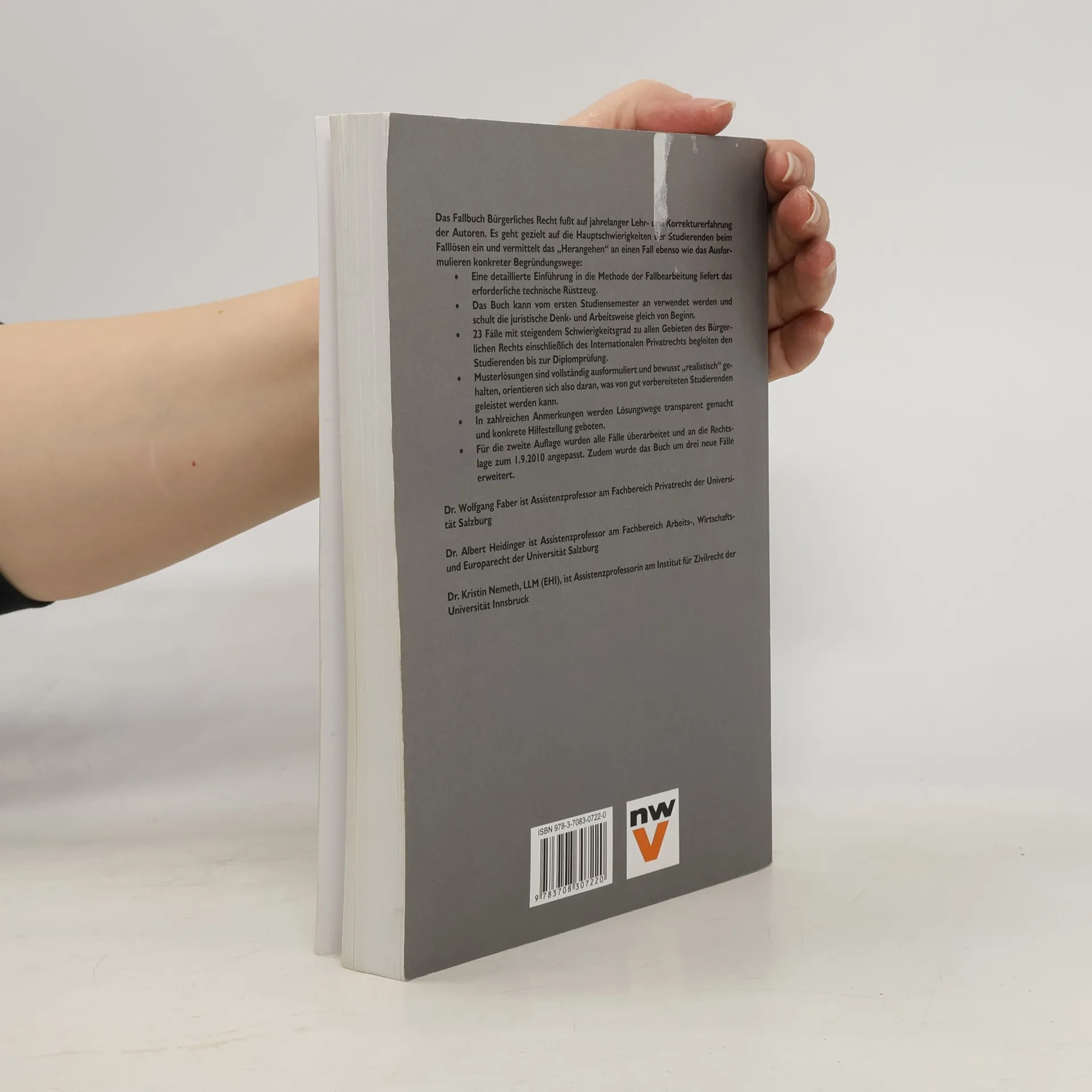 Das Fallbuch Bürgerliches Recht fußt auf jahrelanger Lehr- und Korrekturerfahrung der Autoren. Es geht gezielt auf die Hauptschwierigkeiten der Studierenden beim Falllösen ein und vermittelt das „Herangehen“ an einen Fall ebenso wie das Ausformulieren konkreter Begründungswege: Eine detaillierte Einführung in die Methode der Fallbearbeitung liefert das erforderliche technische Rüstzeug. Das Buch kann vom ersten Studiensemester an verwendet werden und schult die juristische Denk- und Arbeitsweise gleich von Beginn. 23 Fälle mit steigendem Schwierigkeitsgrad zu allen Gebieten des Bürgerlichen Rechts einschließlich des Internationalen Privatrechts begleiten den Studierenden bis zur Diplomprüfung. Musterlösungen sind vollständig ausformuliert und bewusst „realistisch“ gehalten, orientieren sich also daran, was von gut vorbereiteten Studierenden geleistet werden kann. In zahlreichen Anmerkungen werden Lösungswege transparent gemacht und konkrete Hilfestellung geboten. Für die zweite Auflage wurden alle Fälle überarbeitet und an die Rechtslage zum 1.9.2010 angepasst. Zudem wurde das Buch um drei neue Fälle erweitert.