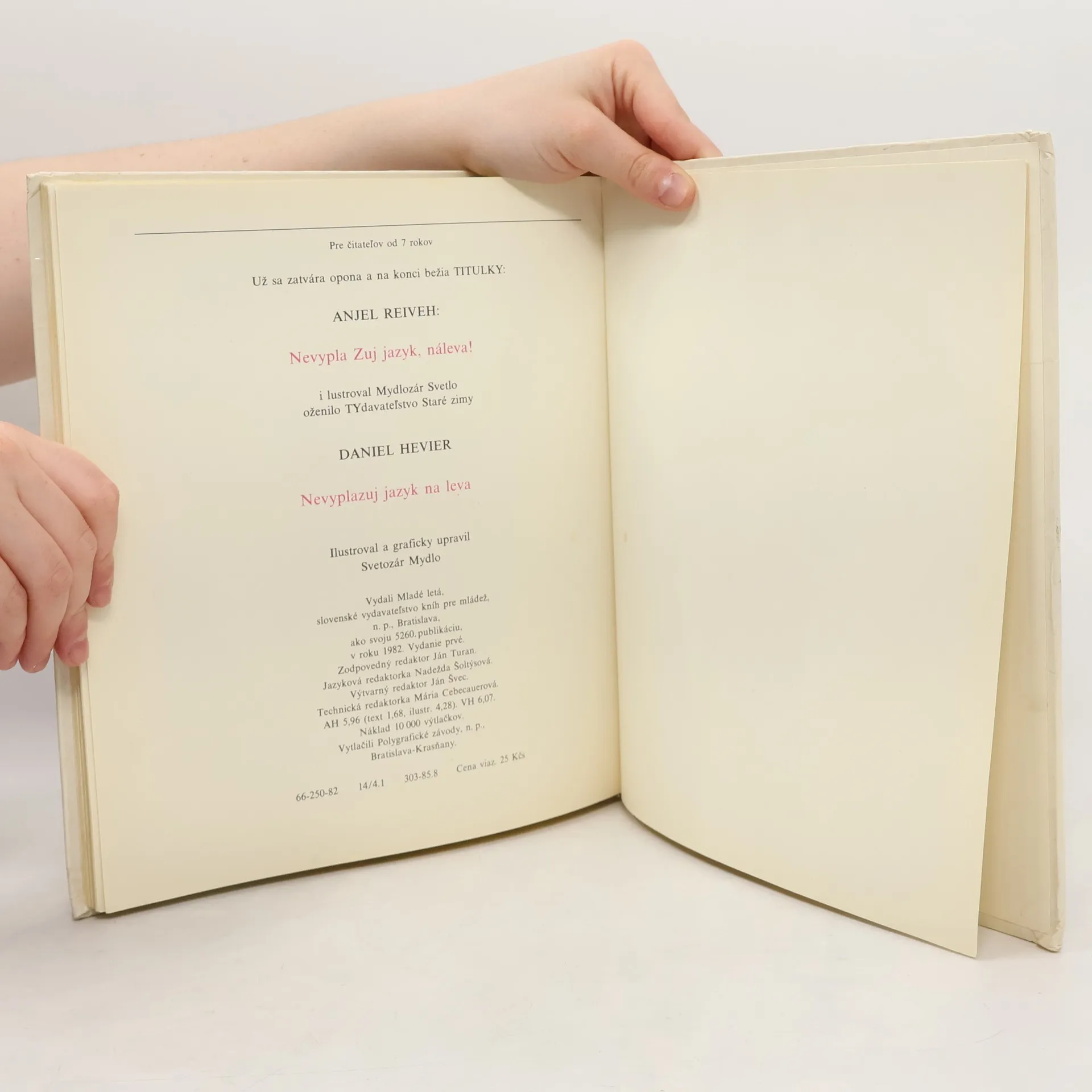 Knižka pre deti s päťdesiatimi básničkami, s obrázkami Svetozára Mydlu, s rozprávkou, ako sa to všetko začalo, s návodom na použitie, s predslovom, s prestávkou, cez ktorú môžeš robiť, čo sa ti len páči, s prídavkom, s listom pre teba a s obsahom, ktorý nie je len takým obyčajným obsahom a najmä s upozornením: NEVYPLAZUJ JAZYK NA LEVA!