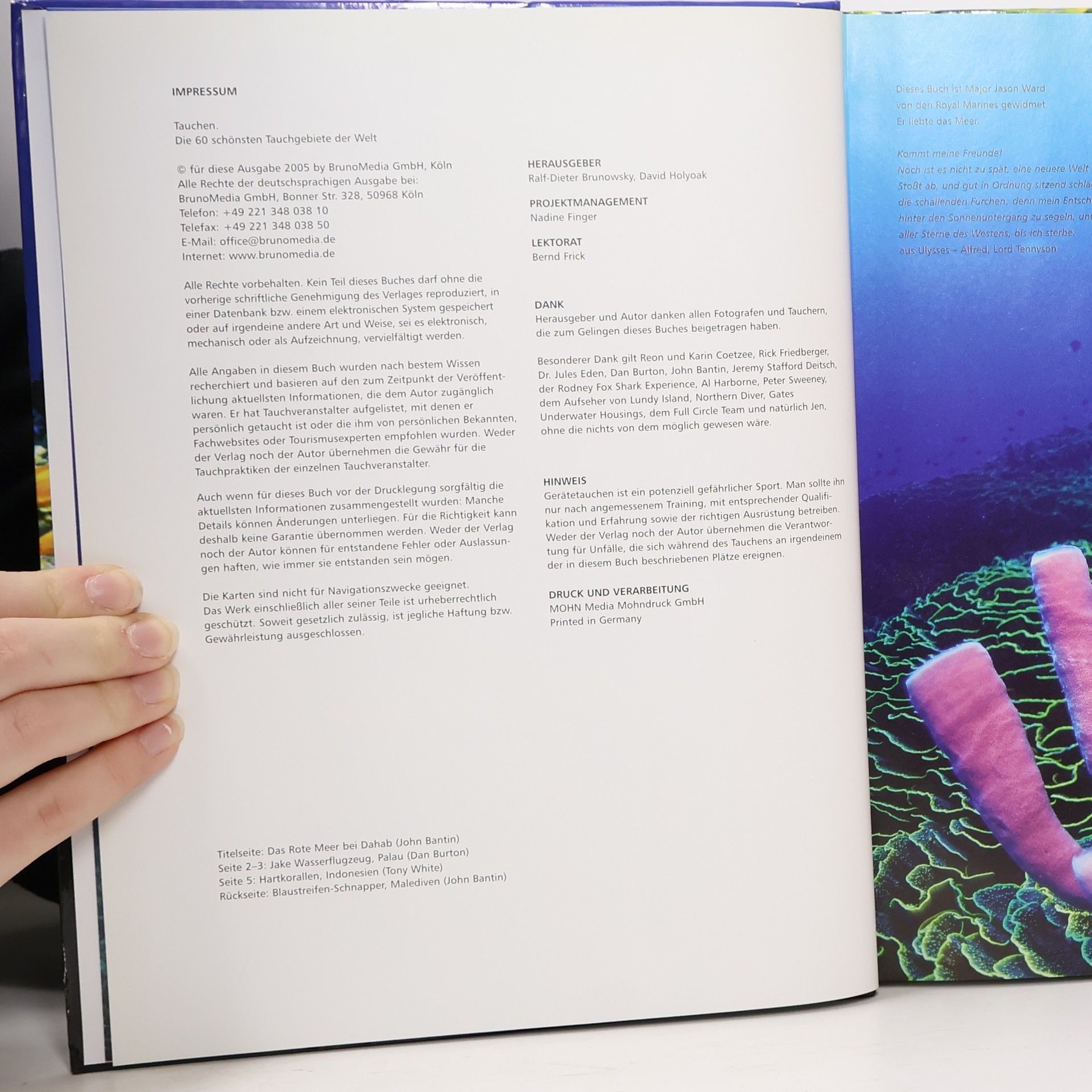 Wer Lust auf schillernde Unterwasserabenteuer hat, dem bietet das neues Buch des Profitauchers und Meeresbiologen Monty Halls eine kompetente Heranführung an das Thema, Anleitungen für die Praxis sowie alle Informationen, die das Taucherherz darüber hinaus noch begehrt: alles Wissenswerte vom Umgang mit Wasserdruck und der richtigen Atmung und Bewegung im Wasser bis zur Planung von Tauchgängen in Korallenriffen. Von Sardinien bis zum Great Barrier Reef werden über 60 ausführliche Profile der weltweit interessantesten Tauchreviere mit Positionskarten, Rahmendaten und Highlights vorgestellt.