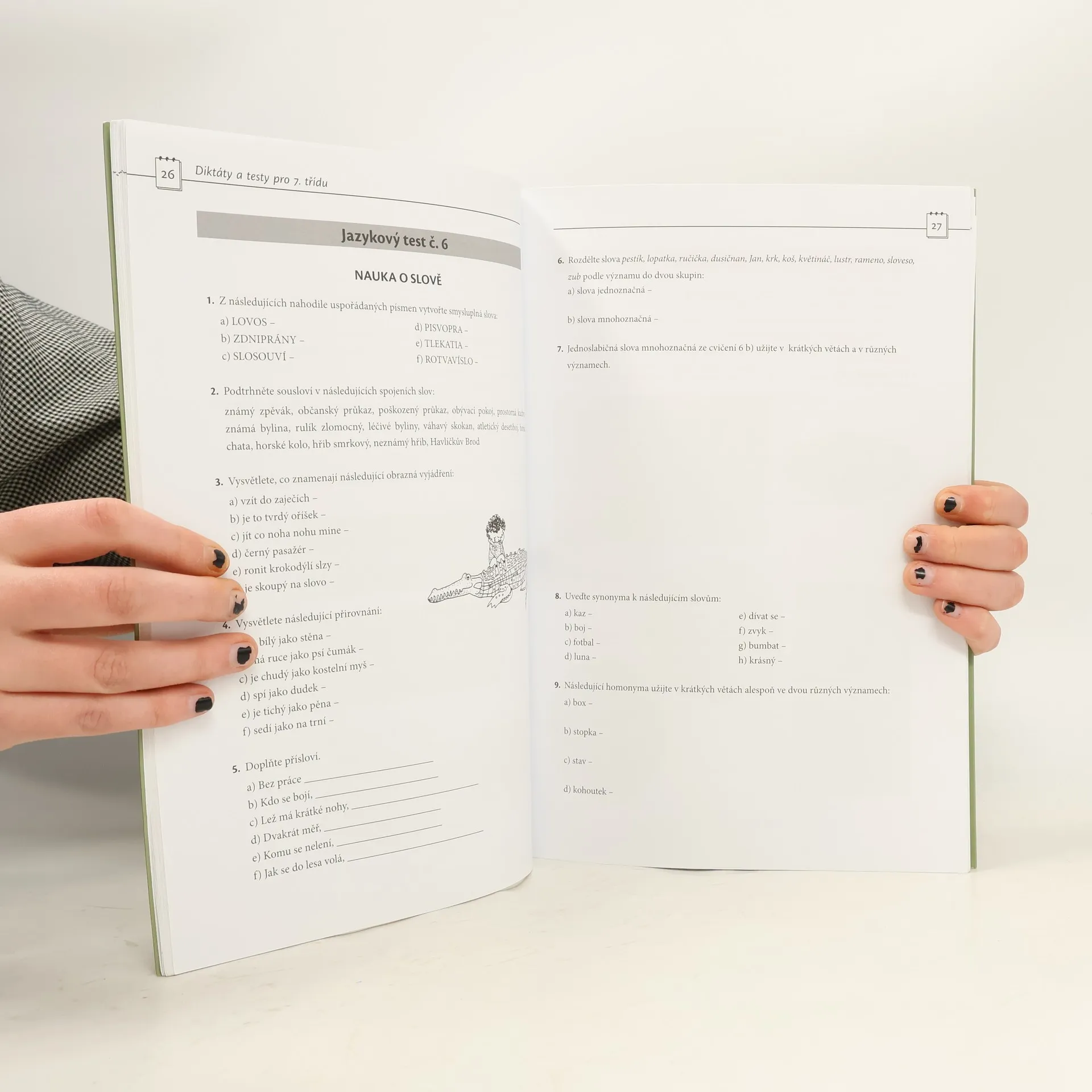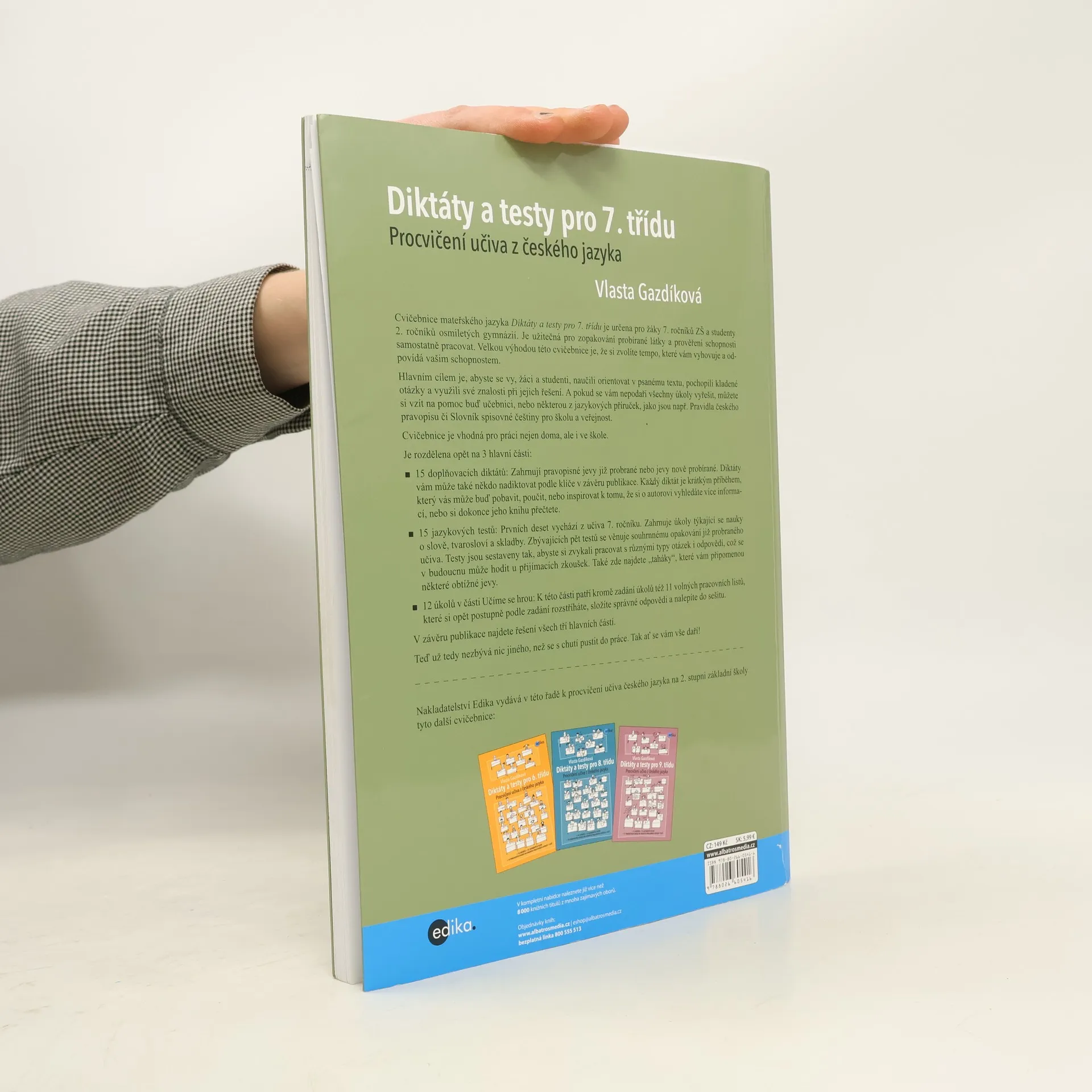 Cvičebnice mateřského jazyka Diktáty a testy pro 7. třídu je určena pro žáky 7. ročníků ZŠ a studenty 2. ročníků osmiletých gymnázií. Je užitečná pro zopakování probírané látky a prověření schopnosti samostatně pracovat. Velkou výhodou této cvičebnice je, že si zvolíte tempo, které vám vyhovuje a odpovídá vašim schopnostem. Hlavním cílem je, abyste se vy, žáci a studenti, naučili orientovat v psanému textu, pochopili kladené otázky a využili své znalosti při jejich řešení. A pokud se vám nepodaří všechny úkoly vyřešit, můžete si vzít na pomoc buď učebnici, nebo některou z jazykových příruček, jako jsou např. Pravidla českého pravopisu či Slovník spisovné češtiny pro školu a veřejnost. Cvičebnice je vhodná pro práci nejen doma, ale i ve škole.