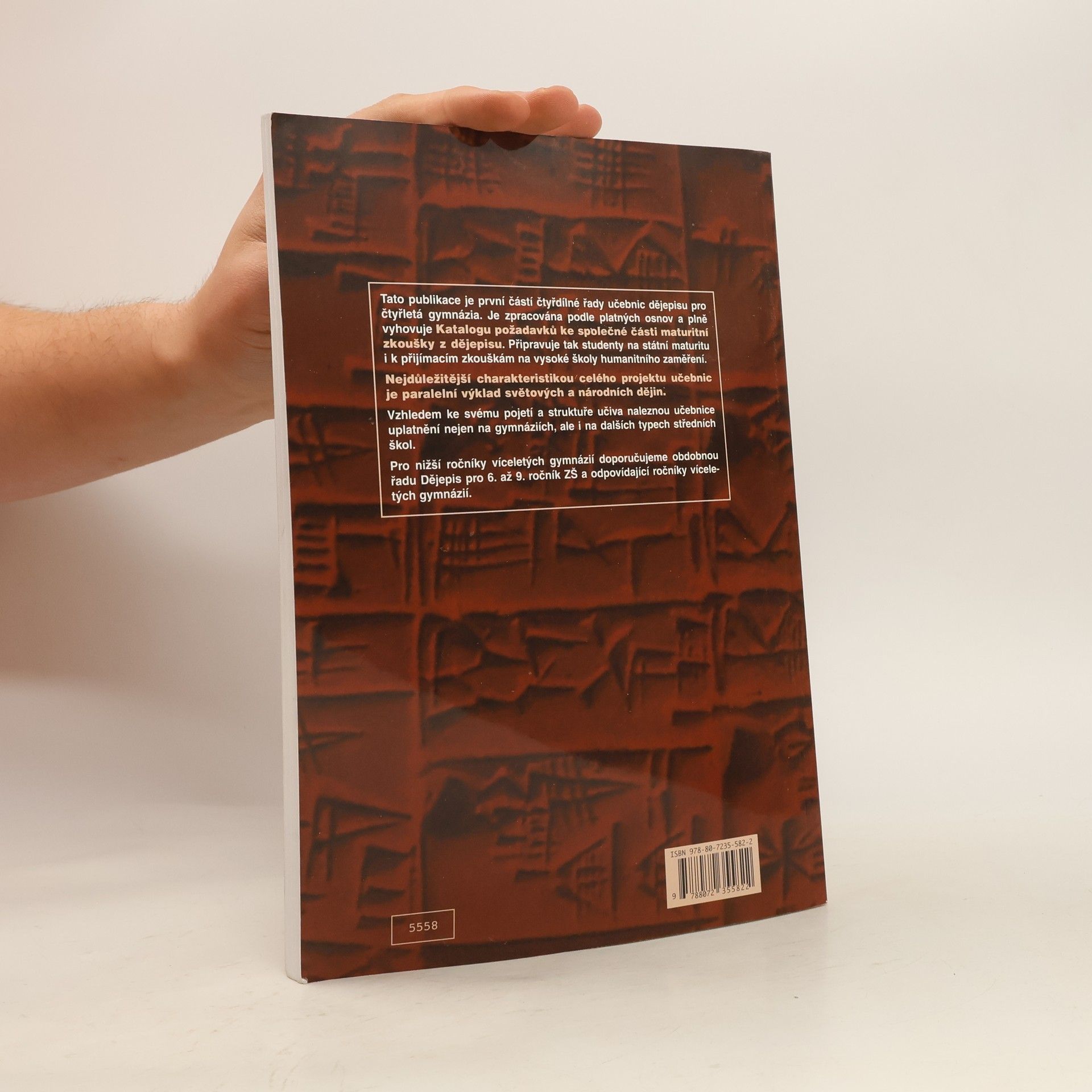 Tato publikace je první částí čtyřdílné řady učebnic dějepisu pe o čtyřletá gymnáia. Je zpracována podle platných osnov a plně vyhovuje Katalogu požadavků ke společné části maturitní zkoušky z dějepisu. Připravuje tak studenty na státní maturitu i k přijímacím zkouškám na vysoké školy humanitního zaměření.