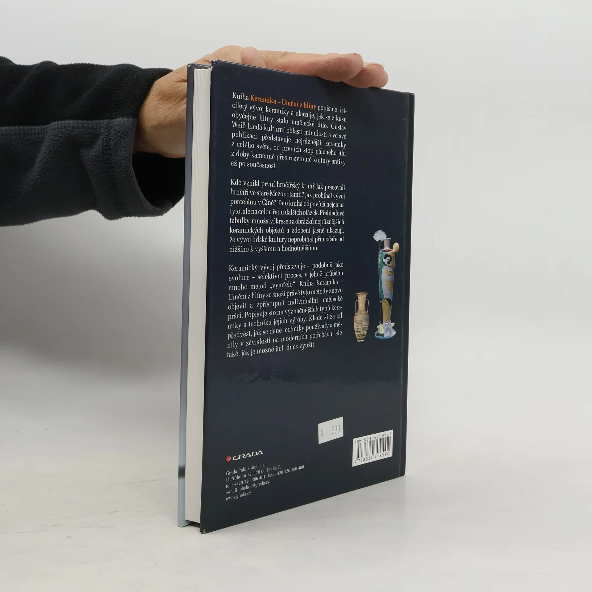 Kniha Keramika - Umění z hlíny popisuje tisíciletý vývoj keramiky a ukazuje, jak se z kusu obyčejné hlíny stalo umělecké dílo. Gustav Weiß hledá kulturní oblasti minulosti a ve své publikaci představuje nejrůznější keramiky z celého světa, od prvních stop páleného jílu z doby kamenné přes rozvinuté kultury antiky až po současnost.Kde vznikl první hrnčířský kruh? Jak pracovali hrnčíři ve staré Mezopotámii? Jak probíhal vývoj porcelánu v Číně? Tato kniha odpovídá nejen na tyto, ale na celou řadu dalších otázek. Přehledové tabulky, množství kreseb a obrázků nejrůznějších keramických objektů a zdobení jasně ukazují, že vývoj lidské kultury neprobíhal přímočaře od nižšího k vyššímu a hodnotnějšímu. Keramický vývoj představuje - podobně jako evoluce - selektivní proces, v jehož průběhu mnoho metod ''vymřelo''. Kniha Keramika - Umění z hlíny se snaží právě tyto metody znovu objevit a zpřístupnit individuální umělecké práci. Popisuje sto nejvýznačnějších typů keramiky a techniku jejich výroby. Klade si za cíl předvést, jak se dané techniky používaly a měnily v závislosti na moderních potřebách, ale také, jak je možné jich dnes využít.