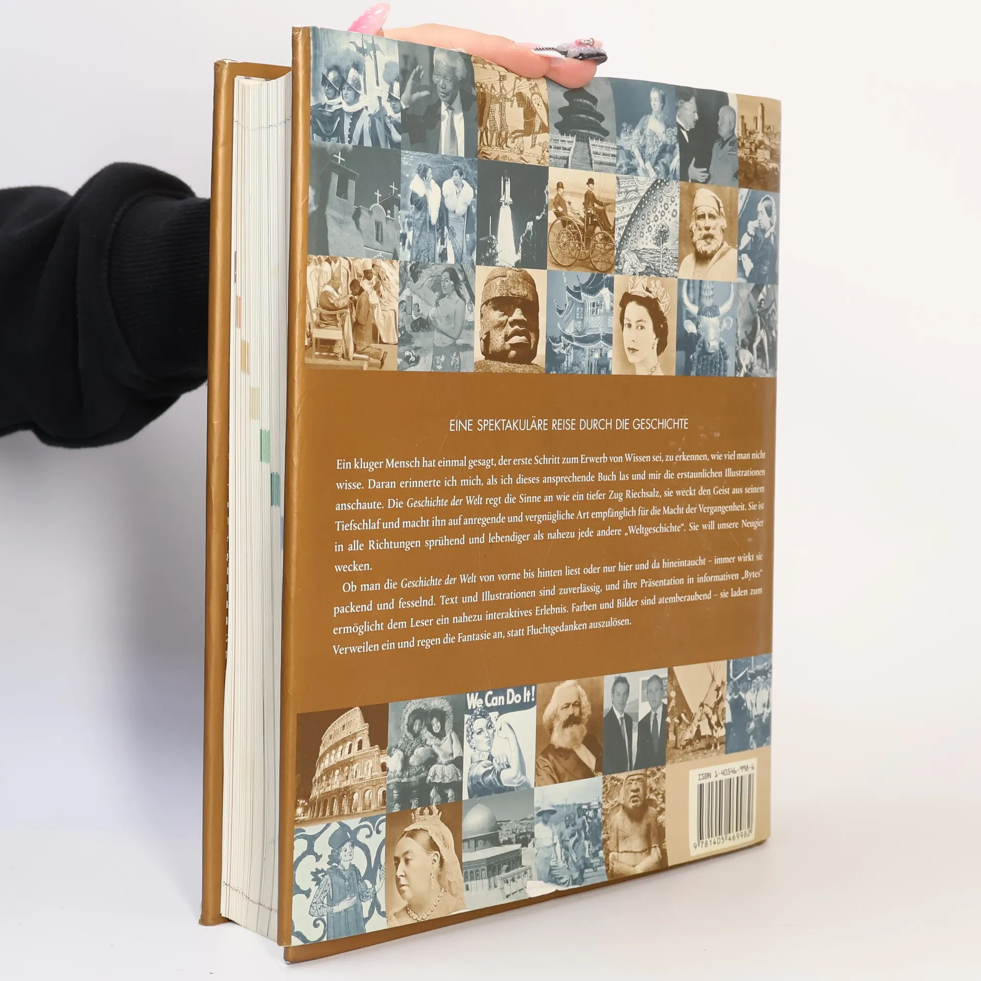 Ein kluger Mensch hat einmal gesagt, der erste Schritt zum Eweb von Wissen sei, zu erkennen, wie viel man nicht wisse.§§Dieses umfangreiche, reich bebilderte Werk stellt die Weltgeschichte von den Anfängen der Zivilisation bis in das 21. Jahrhundert anschaulich dar. Kultur-, Sozial- und Militärgeschichte werden in direkten Bezug zueinander gesetzt, sodass eine vielseitige und lebendige Wiedergabe weltgeschichtlicher Ereignisse entsteht.§§Hunderte von Werken der bildenden Kunst, des Kunsthandwerks und der Architektur legen ein beeindruckendes Zeugnis von den kulturellen Leistungen der Menschheit ab.§Eine Zeitleiste mit Schlüsselereignissen und den wichtigsten Namen und Daten durchzieht das gesamte Buch.
