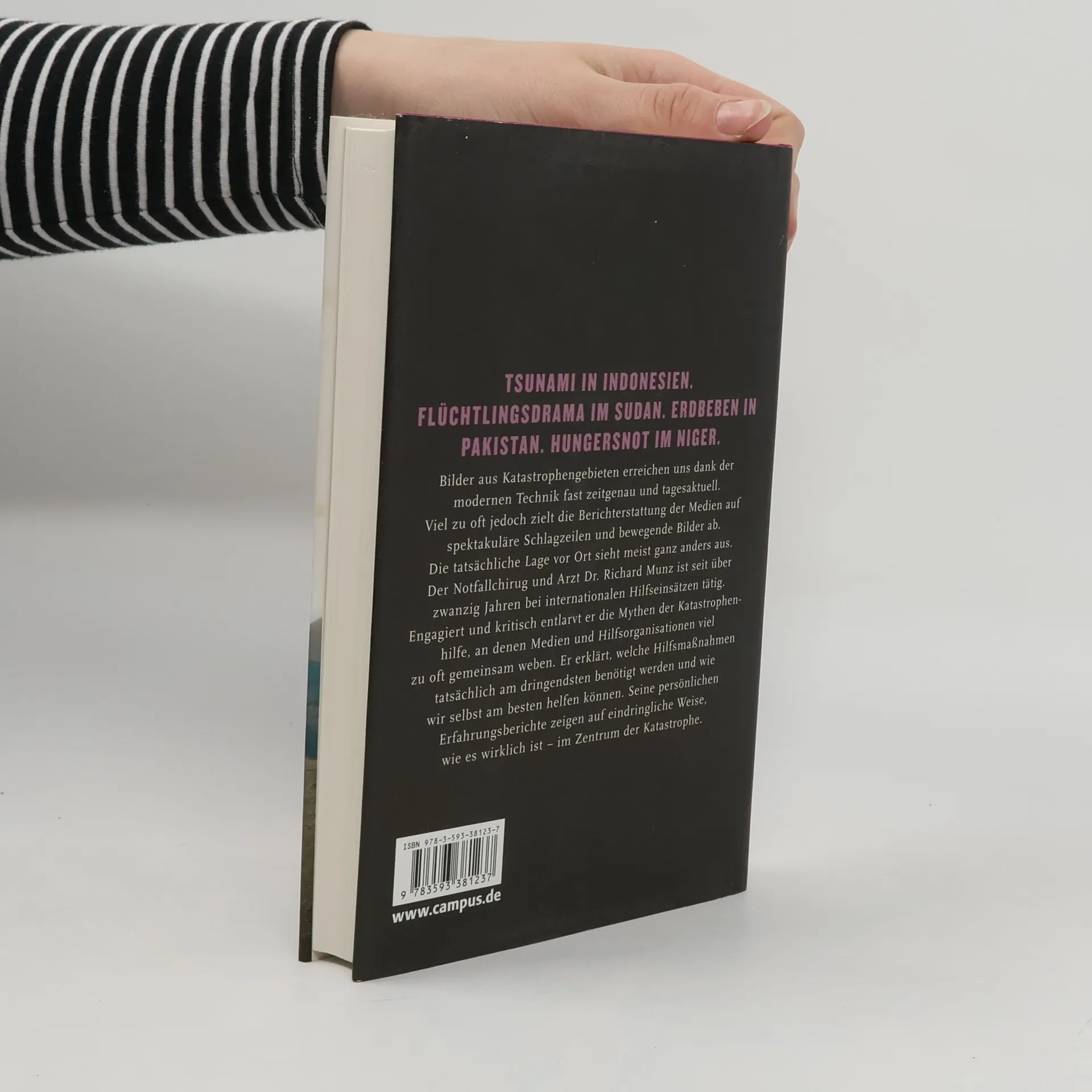 TSUNAMI I N INDONESIEN. FLÜCHTLINGSDRAMA IM SUDAN. ERDBEBEN IN PAKISTAN. HUNGERSNOT IM NIGER. Bilder aus Katastrophengebieten erreichen uns dank der modernen Technik fast zeitgenau und tagesaktuell. Viel zu oft jedoch zielt die Berichterstattung der Medien auf spektakuläre Schlagzeilen und bewegende Bilder ab. Die tatsächliche Lage vor Ort sieht meist ganz anders aus. Der Notfallarzt Dr. Richard Munz ist seit u? ber zwanzig Jahren bei internationalen Hilfseinsätzen tätig. Engagiert und kritisch entlarvt er die Mythen der Katastrophenhilfe, an denen Medien und Hilfsorganisationen viel zu oft gemeinsam weben. Er erklärt, welche Hilfsmaßnahmen tatsächlich am dringendsten benötigt werden und wie wir selbst am besten helfen können. Seine persönlichen Erfahrungsberichte zeigen auf eindringliche Weise, wie es wirklich ist - im Zentrum der Katastrophe.