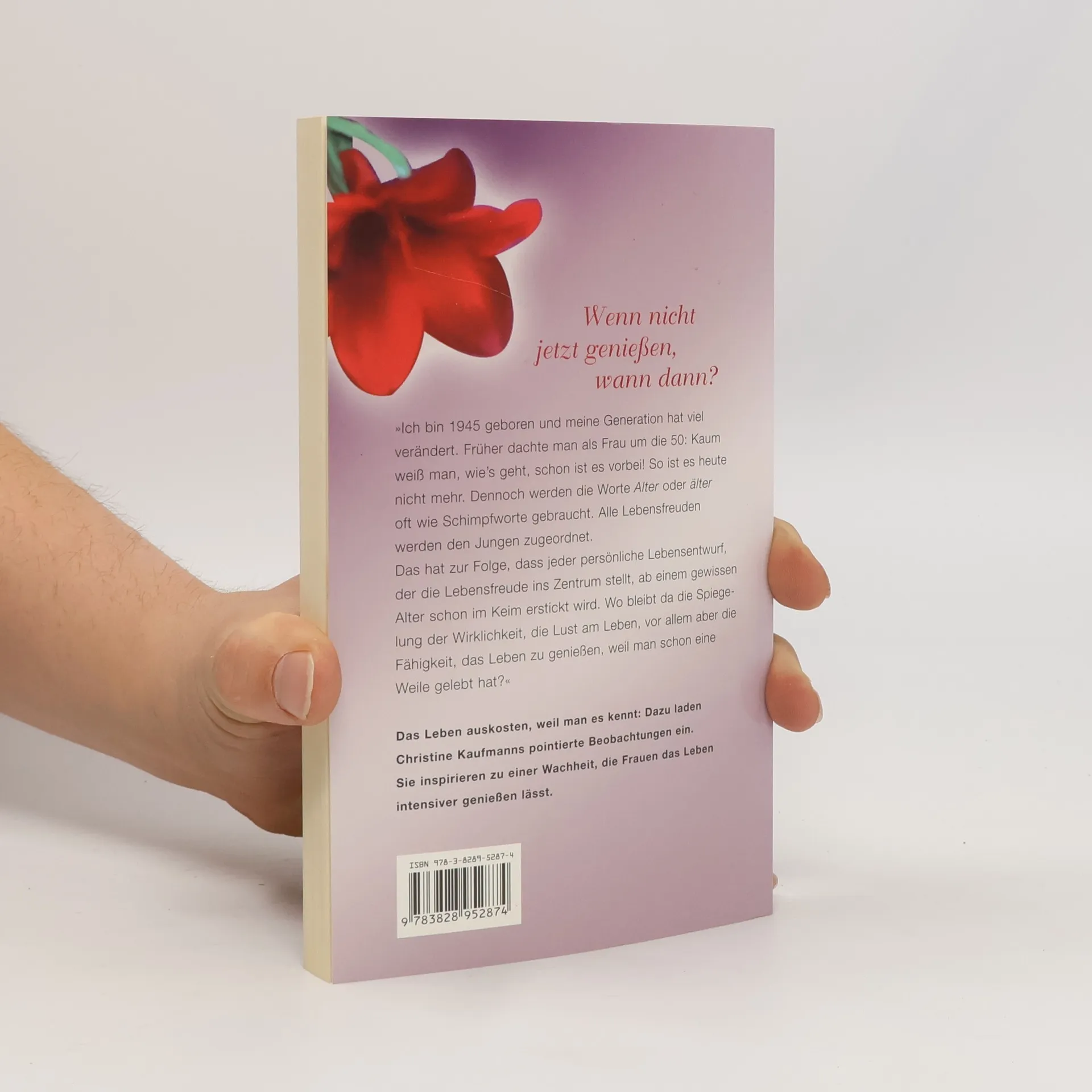 Ich bin 1945 geboren und meine Generation hat viel verändert. Früher dachte man als Frau um die 50: Kaum weiß man, wie? s geht, schon ist es vorbei! So ist es heute nicht mehr. Dennoch werden die Worte ? Alter? oder ?älter? oft wie Schimpfworte gebraucht. Alle Lebensfreuden werden den Jungen zugeordnet. Das hat zur Folge, dass jeder persönliche Lebensentwurf, der die Lebensfreude ins Zentrum stellt, ab einem gewissen Alter schon im Keim erstickt wird. Wo bleibt da die Spiegelung der Wirklichkeit, die Lust am Leben, vor allem aber die Fähigkeit, das Leben zu genießen, weil man schon eine Weile gelebt hat? Das Leben auskosten, weil man es kennt, dazu lädt Christine Kaufmann ein. Sie inspiriert zu einer Wachheit, die Frauen das Leben intensiver genießen lässt. Wenn nicht jetzt genießen, wann dann?