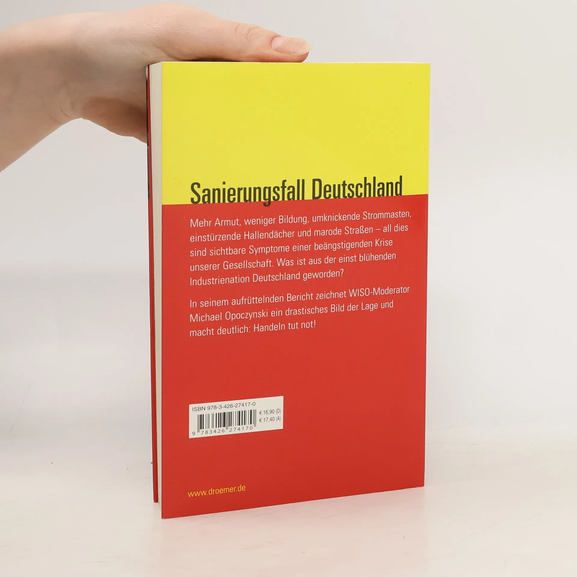 Umknickende Strommasten, einstürzende Hallendächer, marode Straßen – all dies sind keine Einzelfälle, sondern die sichtbaren Symptome einer beängstigenden Krise unseres Systems. Was ist aus der einst blühenden Industrienation Deutschland geworden? In seinem aufrüttelnden Bericht zeichnet WISO-Moderator Michael Opoczynski ein drastisches Bild der Lage und macht deutlich: Handeln tut not! Wunderland ist abgebrannt erzählt in dramatischen Bildern, was geschieht, wenn weiterhin nichts geschieht. Deutschland in 20 Jahren – Arm und Reich sind so weit voneinander entfernt wie nie zuvor, Deutschland ist eine Industriebrache und Reisegruppen aus China oder Indien kommen und bestaunen, was vom ehemaligen Exportweltmeister übrig ist. Noch können wir gegensteuern, sagt Opoczynski und zeigt an vielen Beispielen, wie engagierte Bürger, Unternehmer und Politiker gegen die Lähmung des Landes ankämpfen. Aber allein sind sie zu schwach. Wenn wir dieser Schussfahrt in den Ruin etwas entgegensetzen wollen, brauchen wir mehr Menschen, die Verantwortung übernehmen – Menschen mit Visionen und Gestaltungswillen.