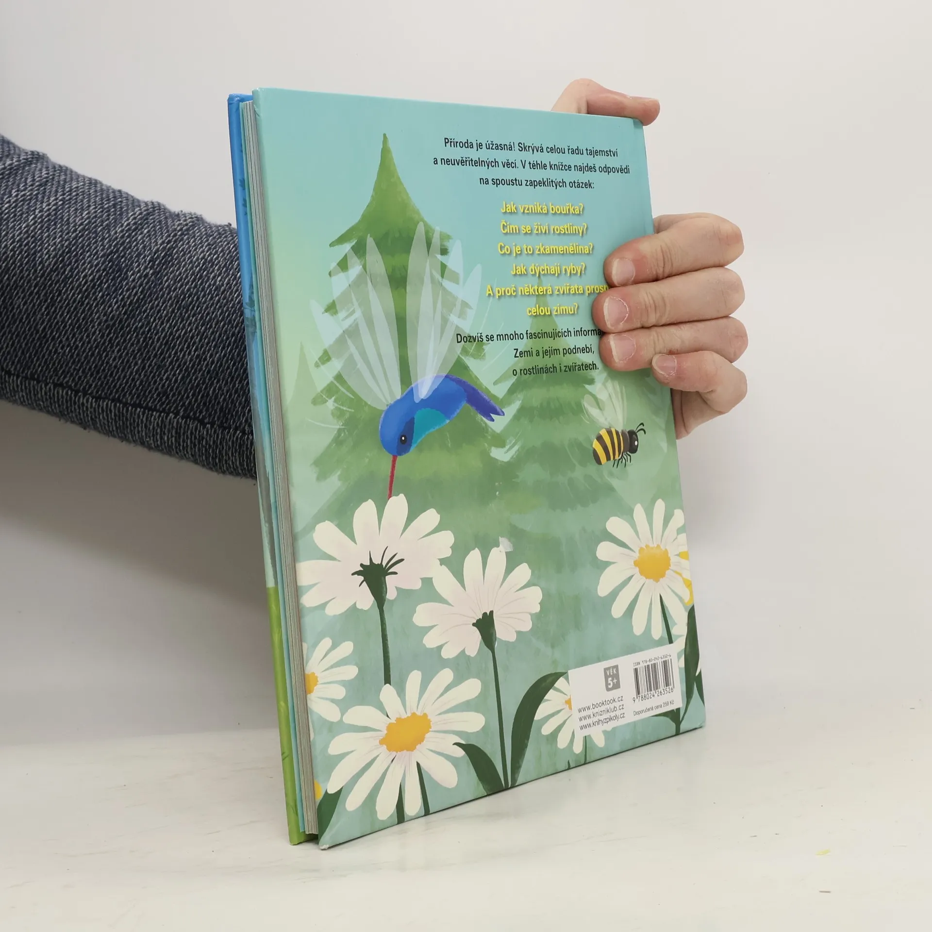 Příroda je úžasná! Skrývá celou řadu tajemství a neuvěřitelných věcí. V téhle knížce najdeš odpovědi na spoustu zapeklitých otázek. Jak vzniká bouřka? Čím se živí rostliny? Co je to zkamenělina? Jak dýchají ryby? A proč některá zvířata prospí celou zimu? Dovíš se mnoho fascinujících informací o planetě Zemi a jejím podnebí, o rostlinách i zvířatech. Kniha je určena dětem od 5 let.