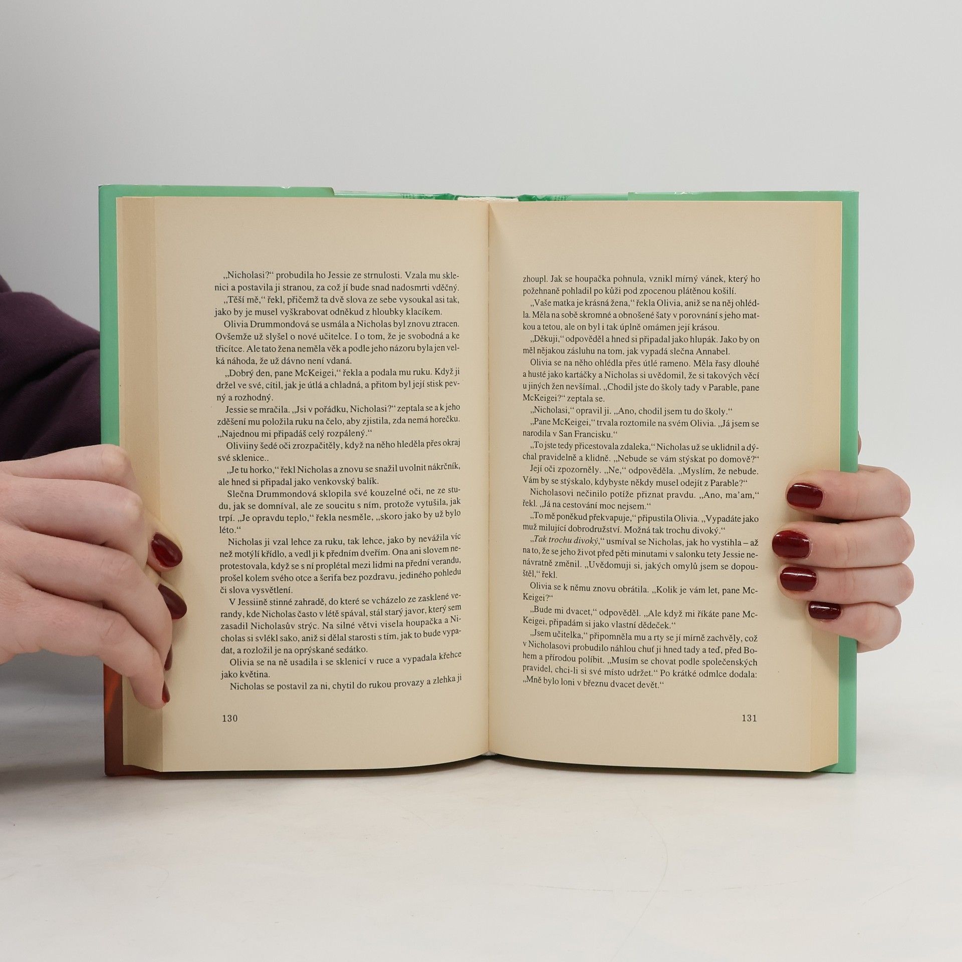 Nevada, 1878. Po dvanácti letech se AnnabelMcKeigeová vrací do nevadského pohraničního městečka Parable. K manželovi, kterého tehdy opustila, k synovi, jehož neviděla vyspívat v muže, k domovu, kde jí málem puklo srdce, když ztratila milovanou dceru. Netají se tím, s jakými úmysly přichází, ale motiv zůstává nejasný. Gabe McKeige miloval svou tvrdohlavou ženu příliš horoucně, než aby si nechal příležitost proklouznout mezi prsty. I on má však svou hlavu a železnou vůli k tomu – a takoví neumějí prosit, hrdost jim to nedovolí. Nepokusil se o to celých dvanáct let, a ani teď se to nemíní učit. Proto se rozhodne ucházet o přízeň své ženy jediným způsobem, který zná – vášnivými polibky a doteky, jež jsou schopny vyvolat v manželském loži sladkou bouři. Annabel shledává, že muži, z jehož náruče před lety utekla, nedokáže odolat…