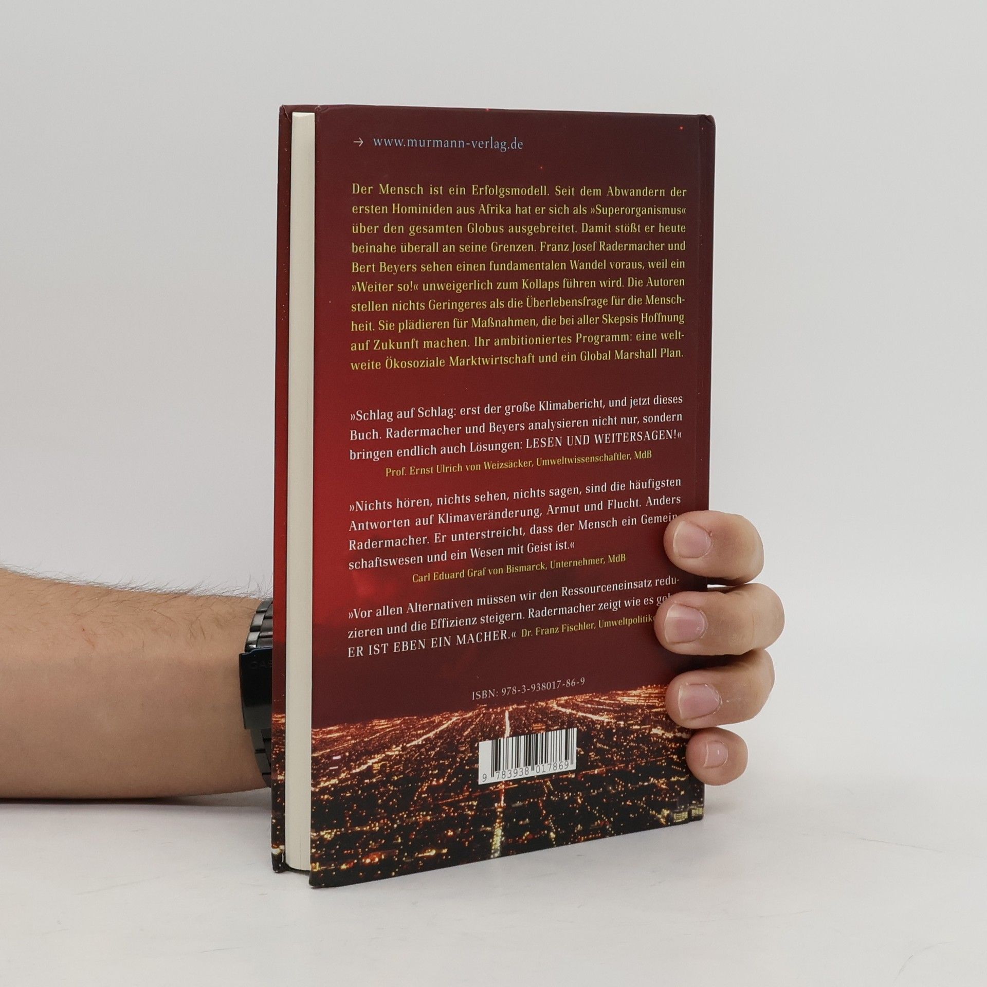 Der Mensch ist ein Erfolgsmodell. Seit dem Abwandern der ersten Hominiden aus Afrika hat er sich als Superorganismus über den gesamten Globus ausgebreitet. Jetzt stößt er an seine Existenzgrenzen. Die Erde ist unter Stress, der Druck auf die Ökosysteme gewaltig. Durch eine exponentielle Bevölkerungszunahme und die weltweite Verbreitung des westlichen Wirtschafts- und Lebensmodells werden lebensnotwendige Rohstoffe immer knapper. Zugleich hält die Anpassungsgeschwindigkeit des menschlichen Gehirns mit der steigenden Komplexität der Aufgaben nicht mehr Schritt. Ein „Weiter so!“ führt unausweichlich zum Kollaps. Franz Josef Radermacher und Bert Beyers stellen die Überlebensfrage.