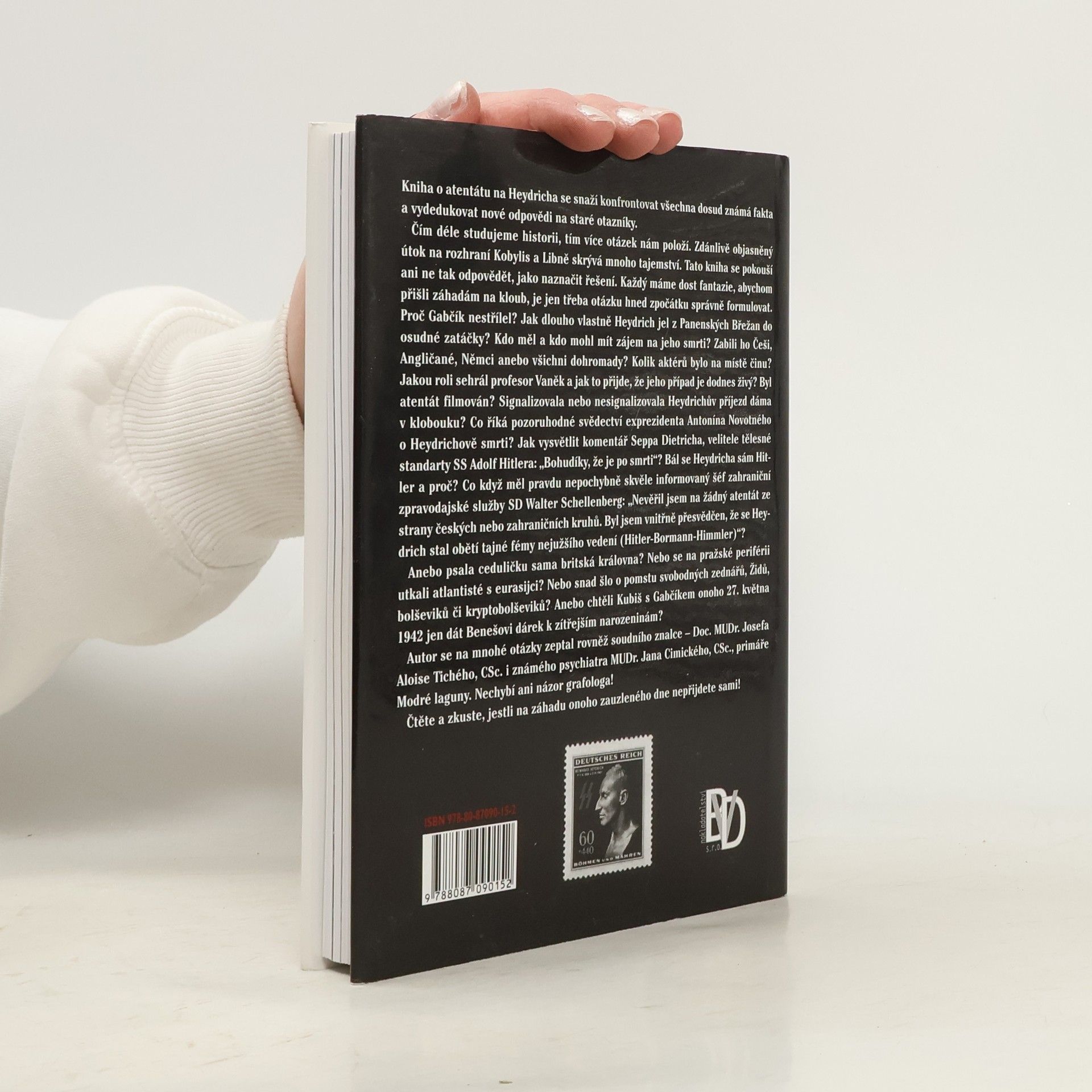 Kniha o atentátu na Heydricha se snaží konfrontovat známá fakta a vydedukovat nové odpovědi na staré otázky. Čím déle studujeme historii, tím více otázek se objevuje. Útok na rozhraní Kobylis a Libně skrývá mnohá tajemství. Kniha nenabízí definitivní odpovědi, ale naznačuje možná řešení. Proč Gabčík nestřílel? Jak dlouho trvala Heydrichova cesta z Panenských Břežan do osudné zatáčky? Kdo měl zájem na jeho smrti? Zabili ho Češi, Angličané, Němci, nebo všichni dohromady? Jaká byla přítomnost aktérů na místě činu? Jakou roli sehrál profesor Vaněk a proč je jeho případ stále aktuální? Bylo atentát filmováno? Jaký význam měla dáma v klobouku? Co říká svědectví exprezidenta Novotného o jeho smrti? Jak vysvětlit komentář Seppa Dietricha: „Bohudíky, že je po smrti“? Bál se Hitler Heydricha? Měl pravdu Walter Schellenberg, když nevěřil v atentát ze strany českých nebo zahraničních kruhů? Nebo se na pražské periferii utkali atlantisté s eurasijci? Autor se ptal i soudního znalce a psychiatra. Čtěte a zkuste sami přijít na kloub záhadě onoho dne!