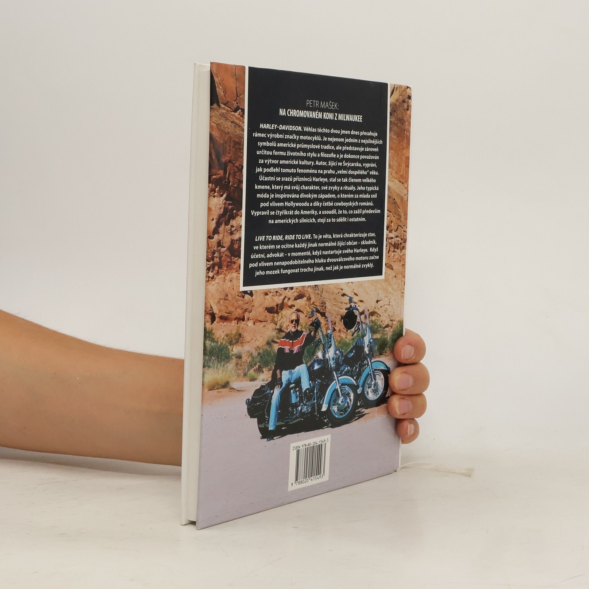 Harley–Davidson. Věhlas těchto dvou jmen dnes přesahuje rámec výrobní značky motocyklů. Je nejenom jedním z nejsilnějších symbolů americké průmyslové tradice, ale představuje zároveň určitou formu životního stylu a filozofie a je dokonce považován za výtvor americké kultury. Autor, žijící ve Švýcarsku, vypráví, jak podlehl tomuto fenoménu na prahu „velmi dospělého“ věku. Účastní se srazů příznivců Harleye, stal se díky tomu členem velkého kmene, který má svůj charakter, své zvyky a rituály. Jeho typická móda je inspirována divokým západem, o kterém za mlada snil pod vlivem Hollywoodu a díky četbě cowboyských románů. Vypravil se čtyřikrát do Ameriky a usoudil, že to, co zažil především na amerických silnicích, stojí za to, aby to sdělil ostatním.Live to ride, ride to live. To je věta, která charakterizuje stav, ve kterém se ocitne každý jinak normálně žijící občan – skladník, účetní, advokát – v momentě, kdy nastartuje svého Harleye, pod vlivem nenapodobitelného hluku dvouválcového motoru začne jeho mozek fungovat trochu jinak, než jak je normálně zvyklý.