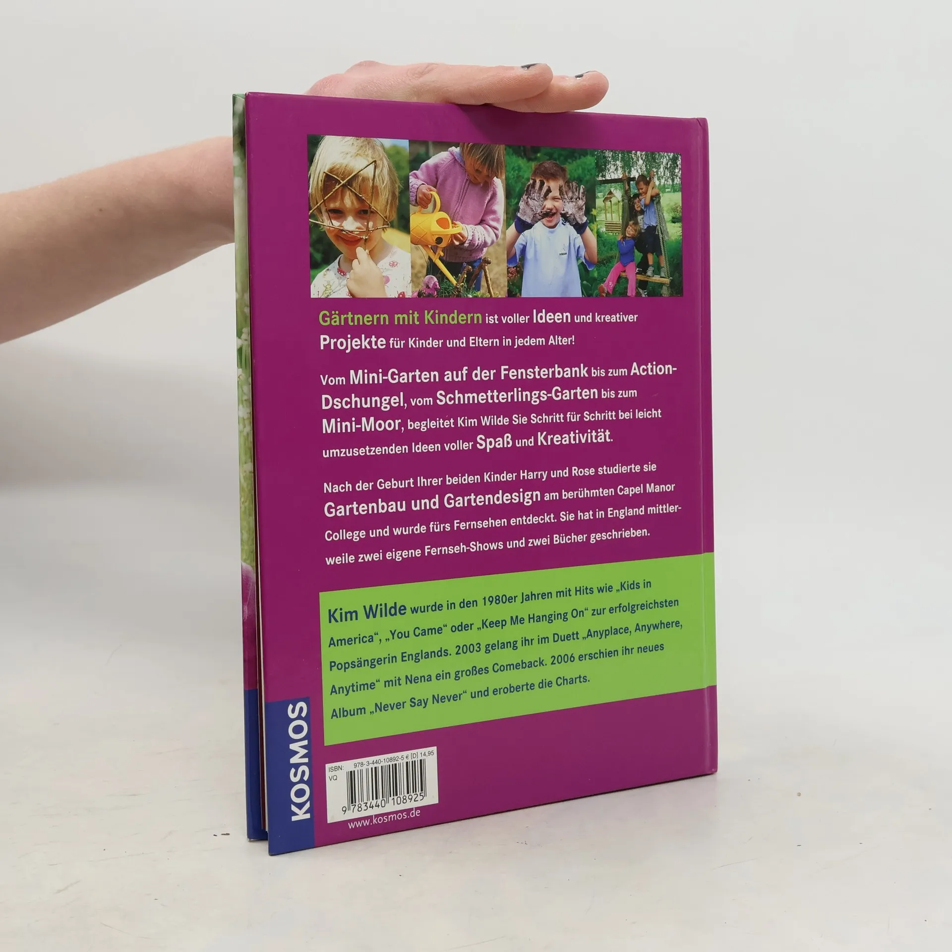 Gärtnern mit Kindern ist voller Ideen und kreativer Projekte für Kinder und Eltern in jedem Alter! Vom Mini-Garten auf der Fensterbank bis zum Action-Dschungel, vom Schmetterlings-Garten bis zum Mini-Moor, begleitet Kim Wilde Sie Schritt für Schritt bei leicht umzusetzenden Ideen voller Spaß und Kreativität. Nach der Geburt Ihrer beiden Kinder Harry und Rose studierte sie Gartenbau und Gartendesign am berühmten Capel Manor College und wurde fürs Fernsehen entdeckt. Sie hat in England mittlerweile zwei eigene Fernseh-Shows und zwei Bücher geschrieben.