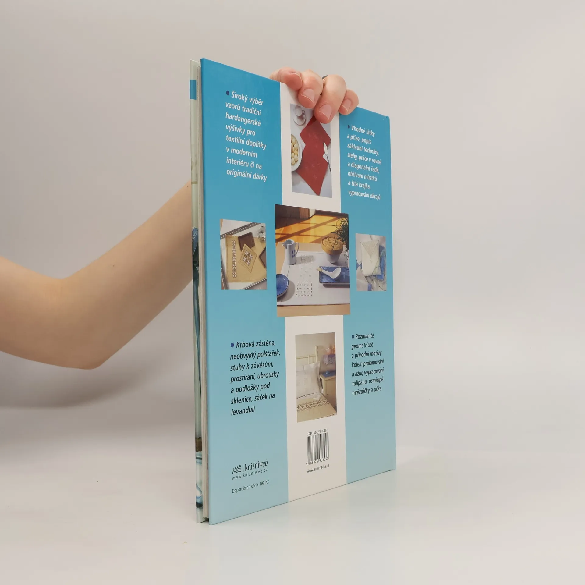 Široký výběr vzorů tradiční hardangerské výšivky pro textilní doplňky v moderním interiéru či na originální dárky. Vhodné látky a příze, popis základní techniky, stehy, práce v rovné a diagonální řadě, obšívání můstků a šitá krajka, vypracování okrajů. Rozmanité geometrické a přírodní motivy kolem prolamování a ažur, vypracování tulipánu, osmicípé hvězdičky a očka