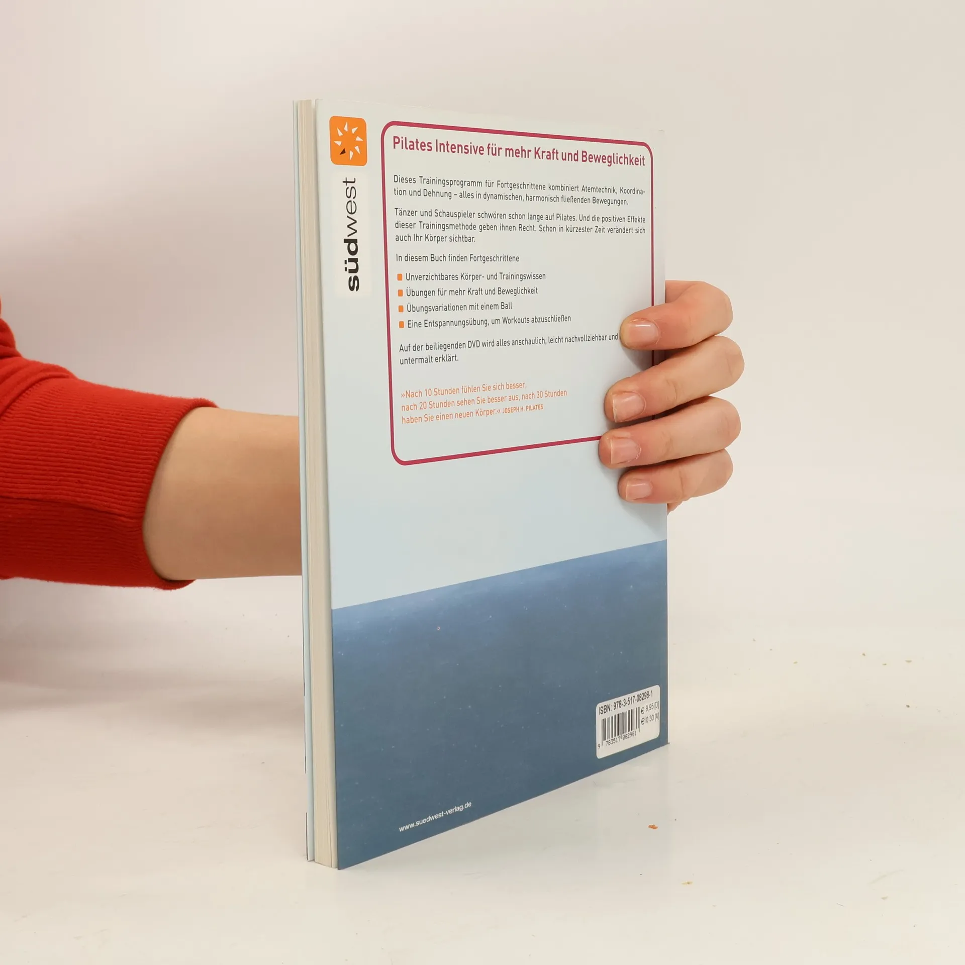 9,95 Pilates ist eine Form der Bewegung, bei der Körper und Geist bewusst zusammenarbeiten müssen. Atem und Bewegung unterstützen sich gegenseitig. Alles dreht sich um die Körpermitte. Die Aufnahmen dafür wurden in Andalusien gemacht, am Strand des Atlantiks, einer wunderbaren Kulisse für diesen Sport. Dieser Intensiv-Kurs baut auf dem Basis-Programm auf und bietet Fortgeschrittenen neue, komplexe Bewegungsabläufe, die für mehr Dynamik sorgen und sowohl die Flexibilität als auch die Kraftausdauer fördern. Wegen des Tempos und des erhöhten Schwierigkeitsgrades sind diese Übungen für den absoluten Neueinsteiger nicht zu empfehlen.