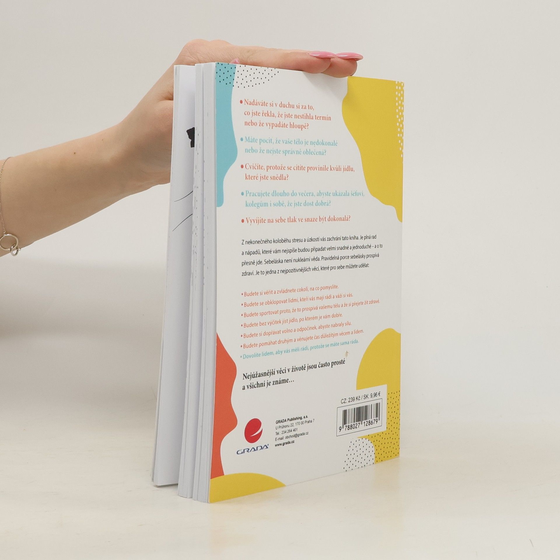 Cítíte se někdy špatně kvůli tomu, co jste řekla, nebo jak vypadáte? Máte pocit nedokonalosti svého těla nebo se cítíte provinile kvůli jídlu? Pracujete dlouho, abyste prokázala svou hodnotu? Pokud zažíváte neustálý stres, může to mít vážné zdravotní důsledky, jako oslabení imunitního systému, zvýšené riziko srdečních onemocnění, urychlené stárnutí a náchylnost k úzkosti a depresím. Tato kniha nabízí jednoduché a snadno aplikovatelné rady, jak se vymanit z cyklu stresu a úzkosti. Sebeláska není složitá; pravidelná péče o sebe přináší zdraví a pozitivní změny. Pomůže vám posílit sebevědomí, obklopit se lidmi, kteří vás podporují, a cvičit pro zdraví, nikoli z pocitu viny. Umožní vám jíst bez výčitek, dopřát si odpočinek a věnovat čas důležitým věcem a lidem. Dovolíte si být milována, protože se máte ráda. Nejkrásnější věci v životě jsou často jednoduché a známé, a tato kniha vám ukáže, jak je zařadit do každodenního života.