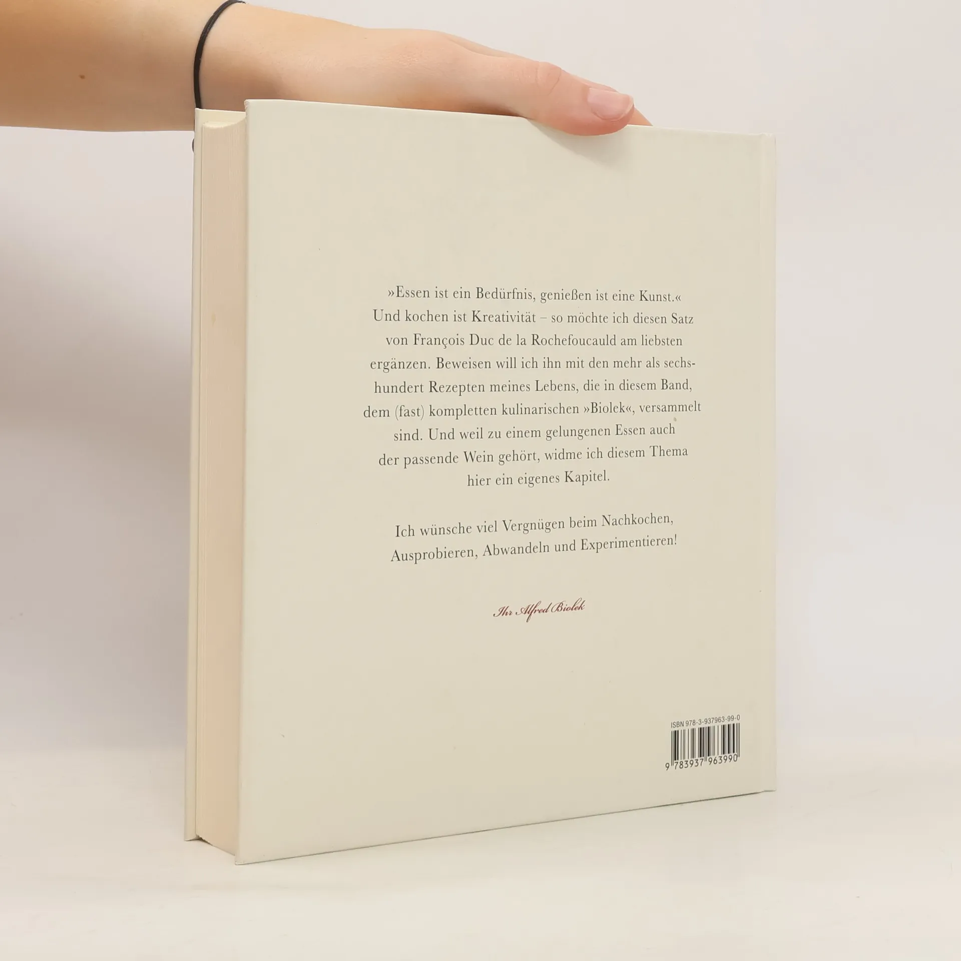 Die Lieblingsrezepte Alfred Bioleks erscheinen anlässlich seines 75. Geburtstags in besonderer Ausstattung. Sowohl Hobbyköche als auch Küchenprofis finden in diesem praktischen Küchenkochbuch, in dem über 600 Zubereitungsmethoden und Gerichte vorgestellt werden, von allem etwas: Suppen, Aufläufe, Pasta, Gemüse, Fisch, Fleisch oder Süßes zum Nachtisch. Vegetarische Gerichte sind speziell gekennzeichnet und dem Thema Wein widmet der Liebhaber ausgewählter Tropfen sogar ein extra Kapitel.