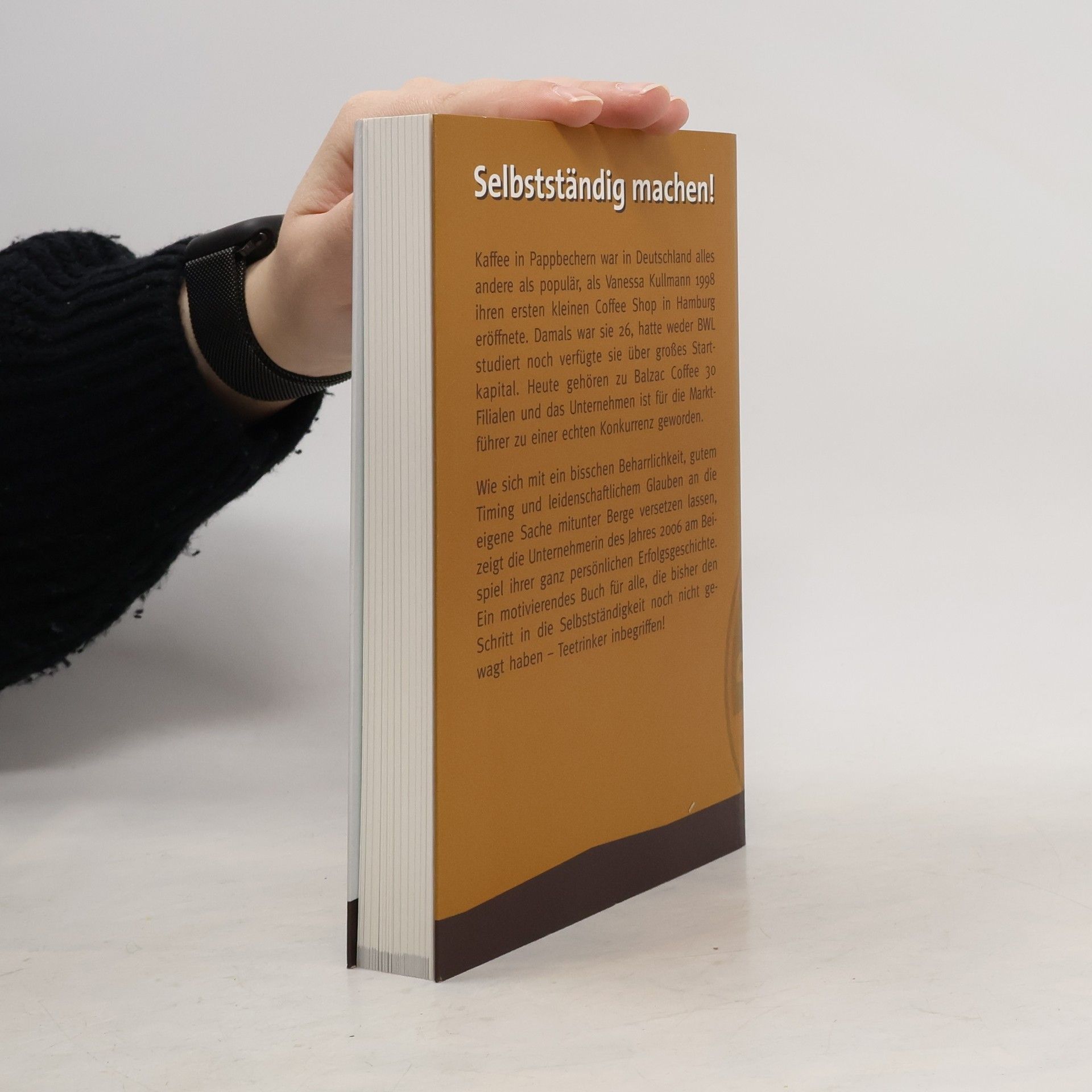 Kaffee in Pappbechern war 1998 in Deutschland noch unpopulär, als Vanessa Kullmann ihren ersten Coffee-Shop in Hamburg eröffnete. Mit 25 Jahren begann sie ihre Reise, die heute zur Balzac Coffee GmbH mit 30 Filialen und ernsthafter Konkurrenz für Marktführer wie Starbucks geführt hat. Ihre Geschichte zeigt, wie mit Beharrlichkeit, gutem Timing und Leidenschaft trotz widriger Umstände Erfolge möglich sind. Es gibt viele Wege zum Erfolg, doch sie erfordern den Mut, sie zu gehen. Viele träumen davon, ihre Ideen zu verwirklichen und selbstständig zu werden, scheuen jedoch den Sprung ins Ungewisse. Sicherheitsdenken und Respekt vor großen Herausforderungen scheinen oft hemmend zu wirken. Vanessa Kullmann widerspricht dem: Wer über den Tellerrand hinausblickt, gesellschaftliche Trends erkennt und sich nicht entmutigen lässt, hat bereits einen entscheidenden Vorteil. Mit dem Motto „Just go for it!“ hat sie ihren Traum einer eigenen Coffee-Company verwirklicht und belegt, dass in Deutschland eine neue Gründergeneration heranwächst. Dieses motivierende Buch richtet sich an alle, die den Schritt in die Selbstständigkeit noch nicht gewagt haben – Teetrinker inbegriffen.