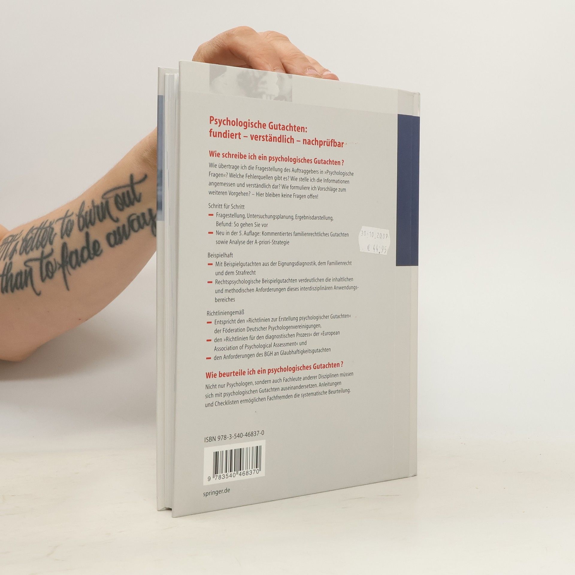 Wie schreibe ich ein Gutachten? Hypothesenbildung, Gesprächsführung, Ergebnisdarstellung: Die Autoren stellen Schritt für Schritt - auch für Nichtpsychologen verständlich - dar, wie ein psychologisches Gutachten aufgebaut sein muss. Mit eignungsdiagnostischen, familienrechtlichen und strafrechtlichen Beispielgutachten. Welche Richtlinien gibt es? Das gutachterliche Vorgehen entspricht den von den deutschen Psychologenvereinigungen verabschiedeten „Richtlinien zur Erstellung psychologischer Gutachten„. Die von Karl Westhoff mitgestalteten Richtlinien der „European Association of Psychological Assessment“ werden ebenfalls ausführlich erläutert. Wie beurteile ich ein Gutachten? Nicht nur Psychologen, sondern auch Juristen, andere Fachleute und Laien müssen sich mit psychologischen Gutachten auseinandersetzen. Checklisten ermöglichen auch Nichtpsychologen die Beurteilung psychologischer Gutachten.