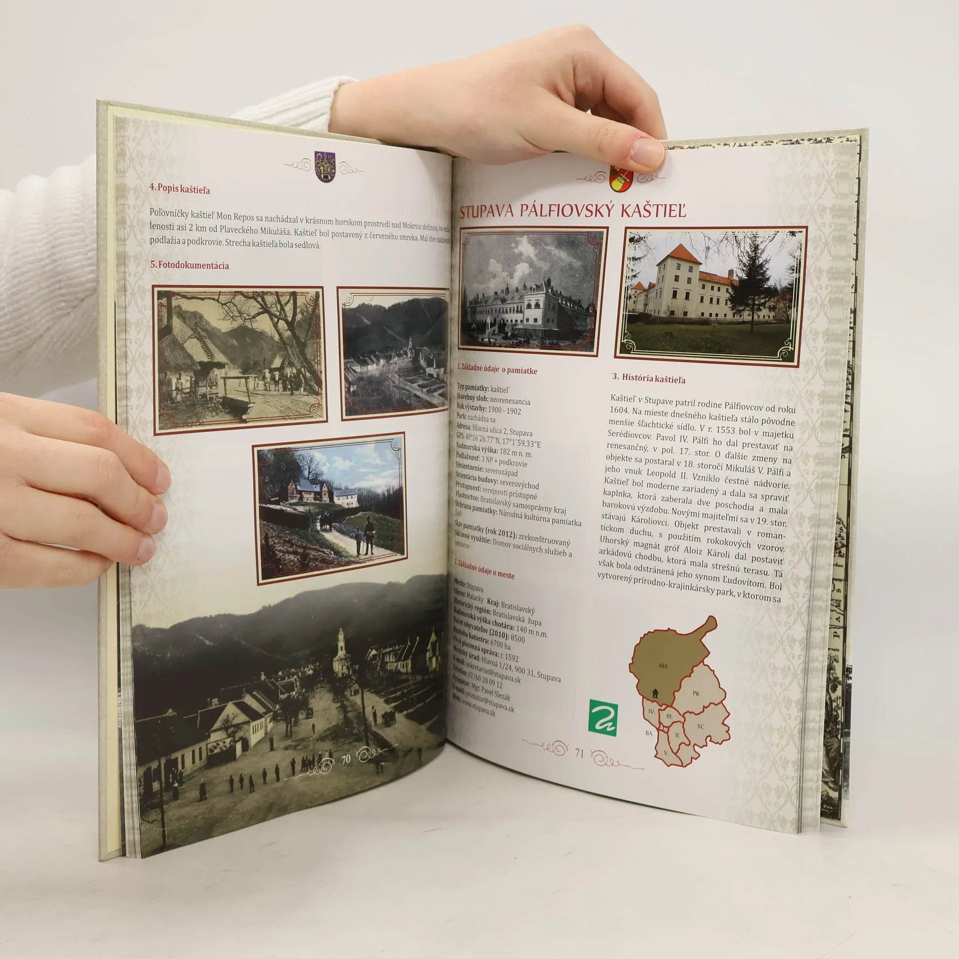 Do rúk sa vám dostal prvý diel knižného projektu občianskeho združenia Slavica, ktorý mapuje kaštiele a kúrie na území Slovenska. Projekt je plánovaný na štyri roky a každé vydanie sa zameriava na jeden z ôsmych samosprávnych krajov. Publikácia má formu katalógu, kde sú objekty usporiadané abecedne podľa okresov a každému historickému pamiatke je vyčlenený minimálne priestor dvoch strán. Obsahuje základné údaje o pamiatke, históriu, krátky popis a fotodokumentáciu. V prílohe nájdete dobové fotografie, register kaštieľov, slovník použitých výrazov a zoznam odporúčanej literatúry. Názvy objektov sú vytvorené podľa kľúča: názov obce, zaužívaný názov objektu a druh objektu. Cieľom je katalogizovať kaštiele a kúrie na celom Slovensku. Informácie sú doplnené fotografiami a mapkami, pričom podrobnejšie údaje budú postupne zverejňované na internetových portáloch. Publikácia obsahuje aj zhrnutie v anglickom a ruskom jazyku. Mnohé historické budovy sú v dezolátnom stave, a preto sa snažíme zachovať túto časť histórie pre budúce generácie. Veríme, že edícia pomôže obciam a majiteľom budov pri propagácii a získavaní prostriedkov na rekonštrukciu. Spolupracovali sme s miestnymi samosprávami, pamiatkovým úradom a podnikateľmi v oblasti turizmu.