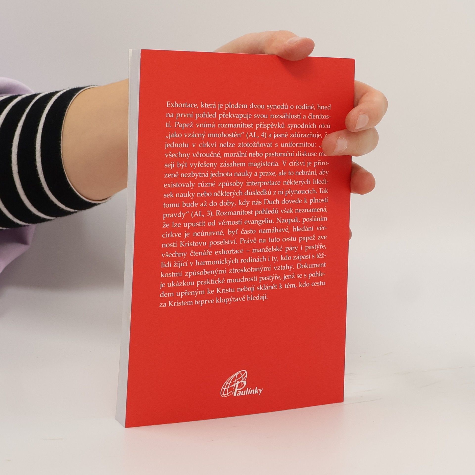 Amoris laetitia (Radost z lásky). Posynodální apoštolská exhortace o lásce v rodině. Exhortace je plodem dvou synodů o rodině. Již z několika úvodních bodů je zřejmé, že papež ani synodní otcové neuhýbají před složitostí předložených témat. Papežův otevřený pohled na realitu rodiny v současném světě není vystavěn na abstrakcích a nedosažitelných metách, ale vyznačuje se věrností evangelnímu ideálu a zároveň pastorační citlivostí vůči konkrétním situacím.