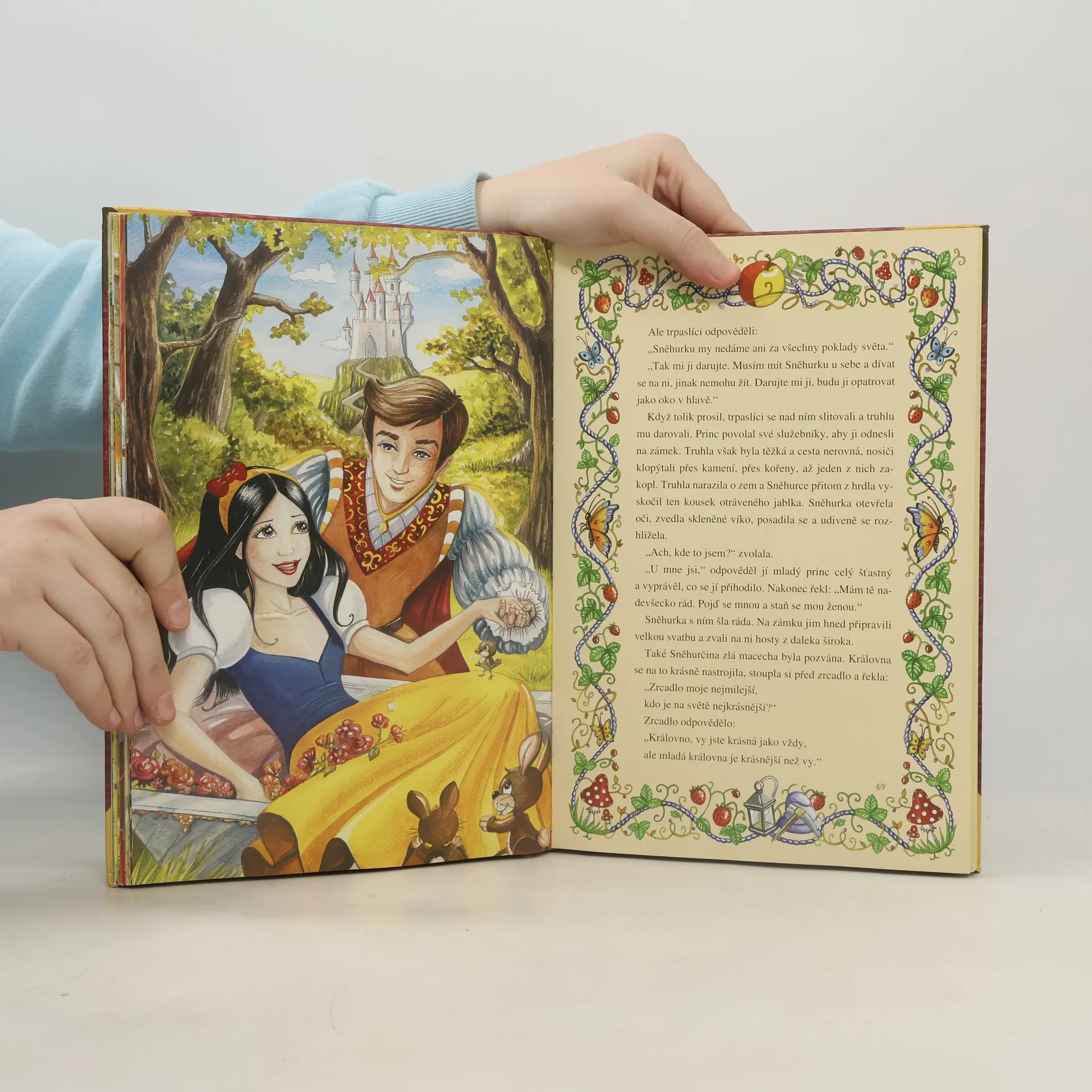 Klasické pohádky s nádhernými obrázky a barevnými obrázky je i orámování kolem textu. Ilustrace: Veronika Miklasová