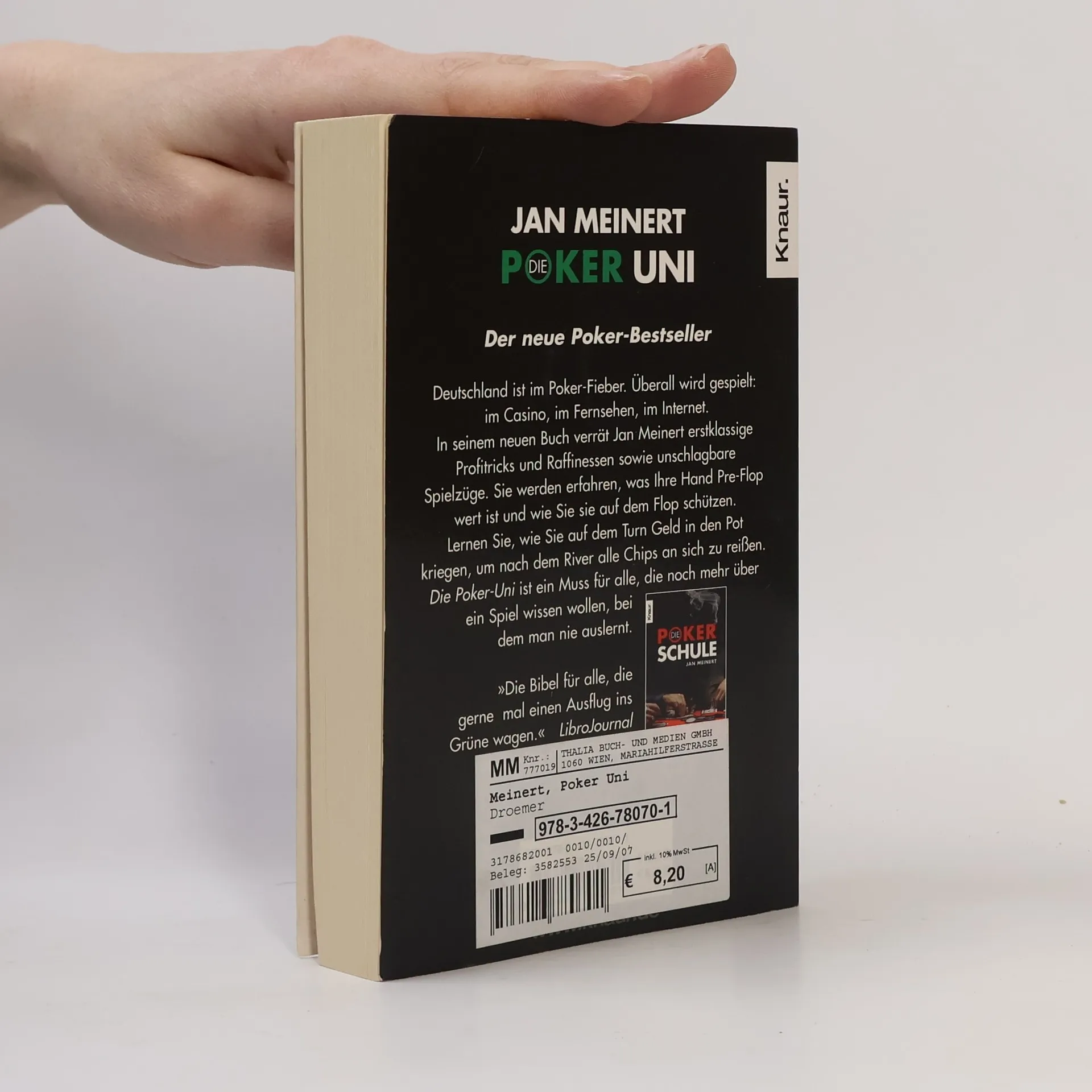 Das Poker-Standardwerk für Fortgeschrittene Poker ist überall. Im Casino, im Fernsehen und im Internet wird gespielt: Online-Poker zieht Millionen von Menschen in den Bann. Mit der Poker-Schule von Jan Meinert haben viele Spieler die wichtigsten Grundlagen erlernt. Nun verrät Jan Meinert in der Poker-Uni neue Profitricks, Raffinessen und unschlagbare Spielzüge: Für alle, die noch mehr über ein Spiel wissen wollen, bei dem man nie auslernt!
